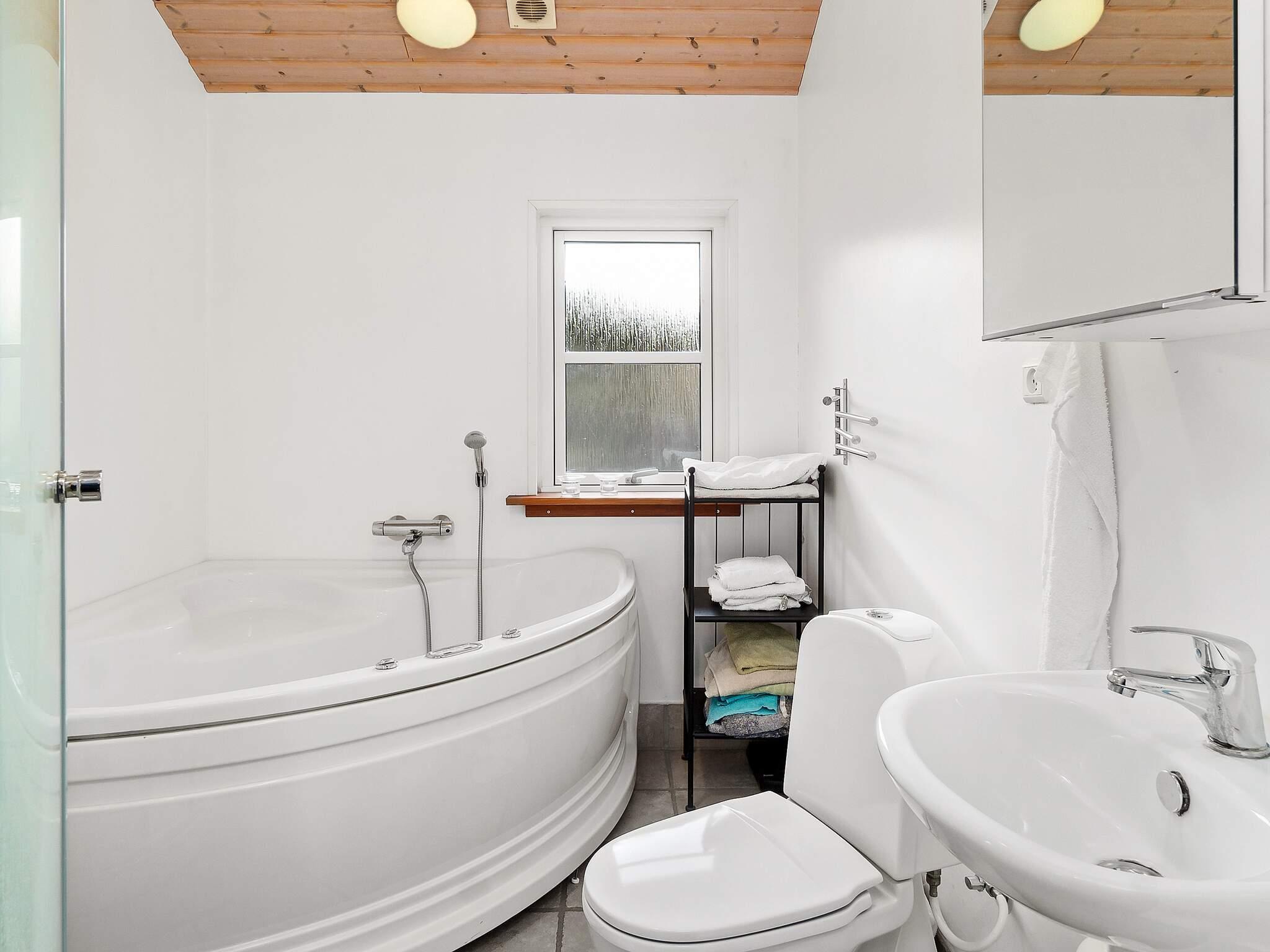 Ferienhaus mit Whirlpool in einem der beiden Badezimmer. Das Wasser liegt zudem in Gehweite. Sie wohnen hier auf einem weitläufigen Naturgrundstück mitten im Wald bei Als Odde.