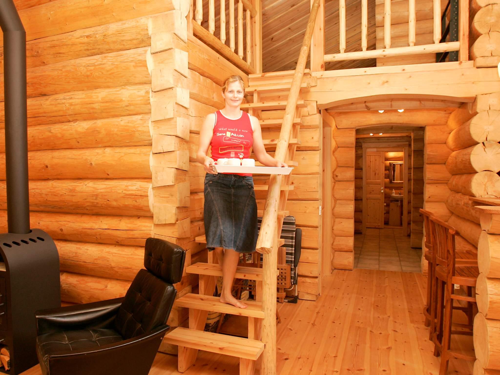 Einzigartiges Holzhaus mit schöner Atmosphäre. Es wurde auf einem schönen Naturgrundstück mitten im Grünen errichtet. Hohe, holzverkleidete Dachschrägen sorgen für Geräumigkeit. Viel Platz auch im Wohn- und Küchenbereich, von wo man auf die große Terrassenfläche gelangt, die das ganze Haus umgibt. Im Wohnraum gibt es eine gemütliche Fernsehecke mit SAT-Empfang. Eine Treppe führt auf den Hems mit weiteren Schlafplätzen und Spielraum. Das Badezimmer verfügt über Whirlpool, Dusche, Waschbecken und WC, und es gibt auch noch ein Gäste-WC.
