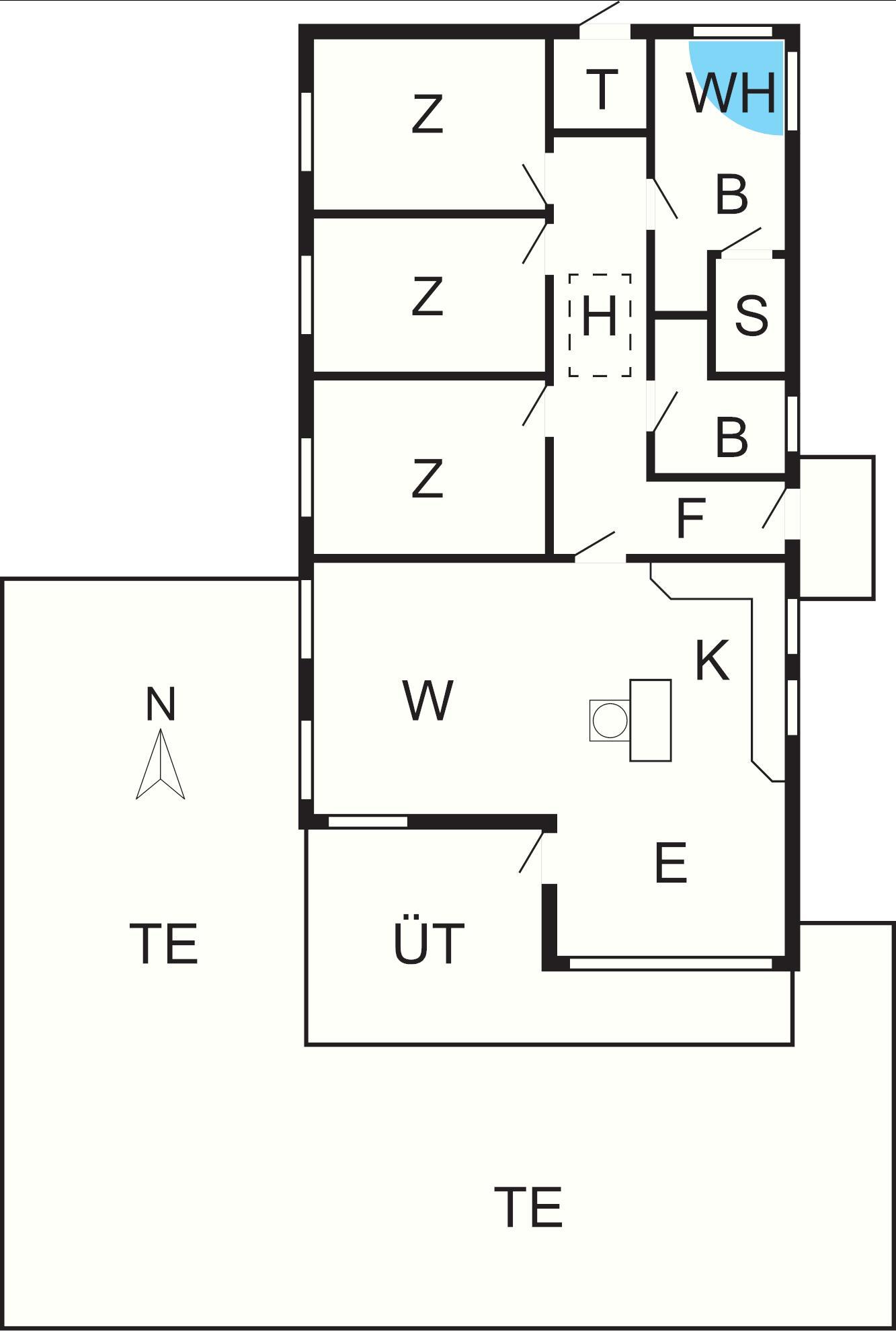 Und: Terrasse, überd. Terrasse, E-Heiz., Luft-Luft-Wärmepumpe, Spielgeräte, Garten 2600 m2, moderne Möblierung, Ferienhausgebiet, Nichtraucherhaus