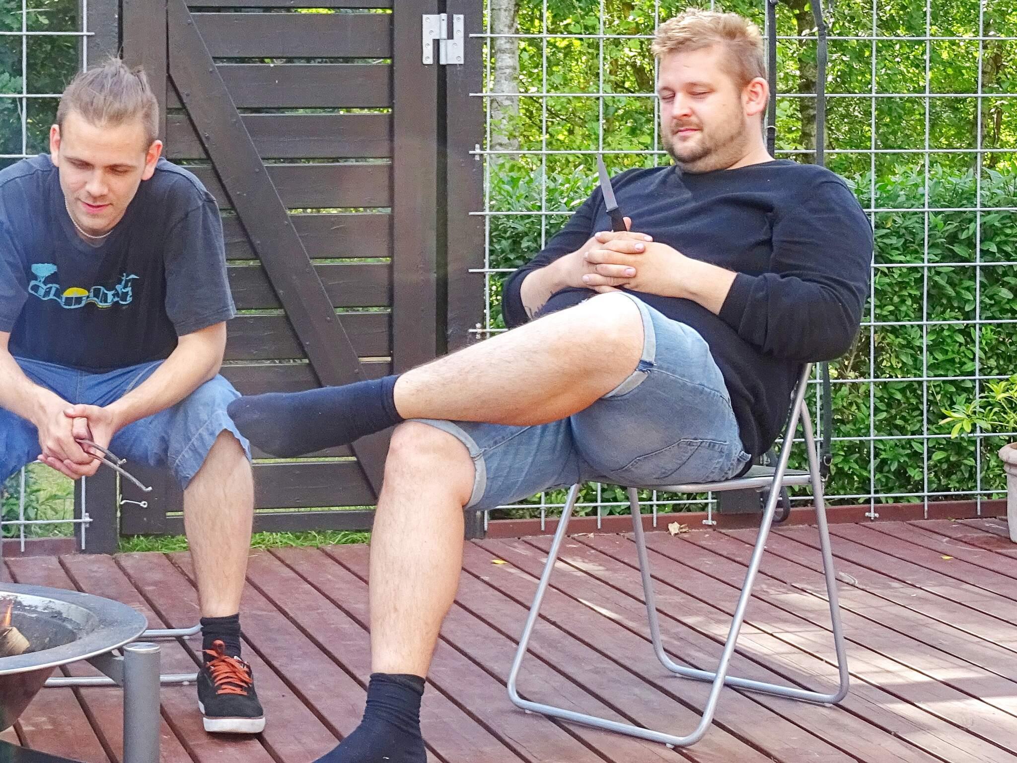 Vom Wohnbereich aus haben Sie Zugang zur teilweise überdachten Terrassenfläche, die Ausblick bietet zum teils unebenen, 2.600 m2 großen Grundstück, das teilweise mit Rasen angelegt, teilweise naturbelassen ist. Für den Freizeitspaß der Kinder stehen auf dem Rasen Sandkasten und Schaukel bereit. Zudem gibt es eine praktische Außendusche für sandige Füße und heiße Tage. Die etwa 100 m2 große Terrassenfläche ist eingezäunt und somit ein sicheres Terrain für Kleinkinder oder den Vierbeiner der Familie. Das 2.600 m2 große Grundstück ist teils mit Rasenfläche angelegt, teils naturbelassen.