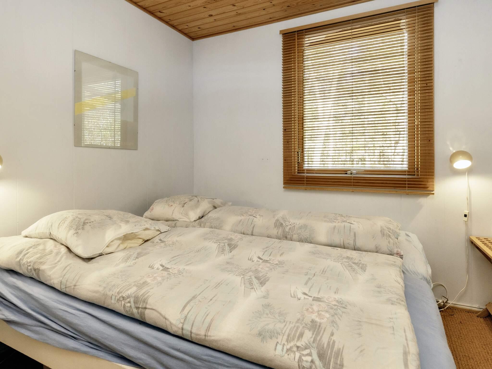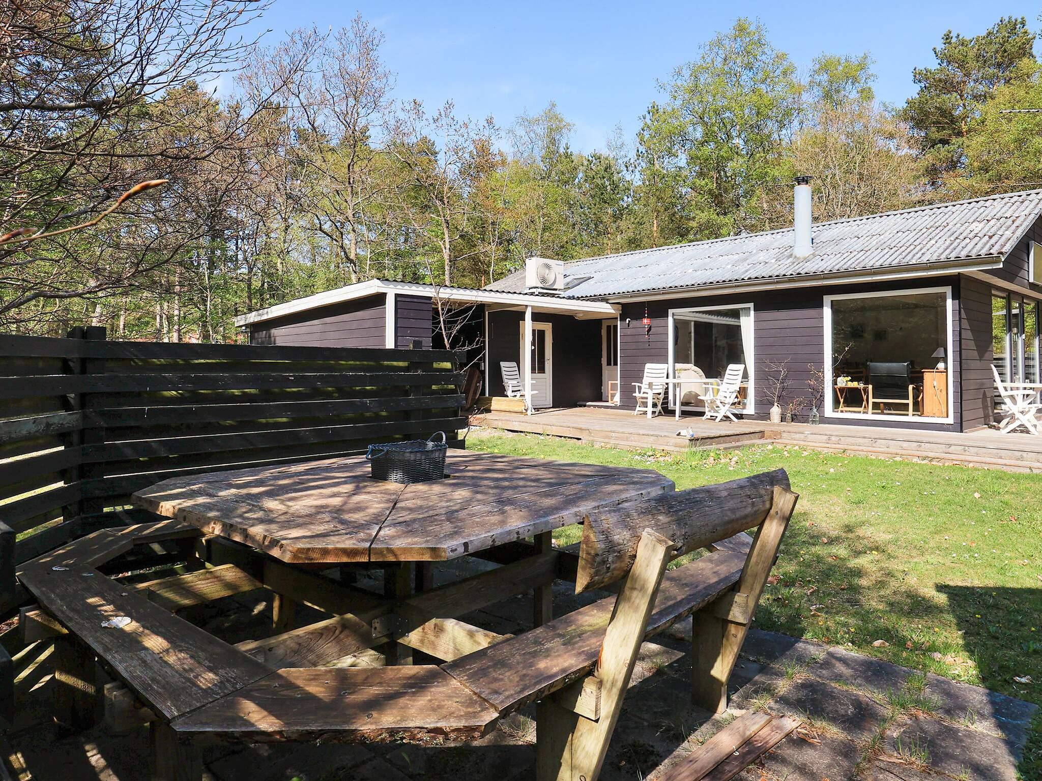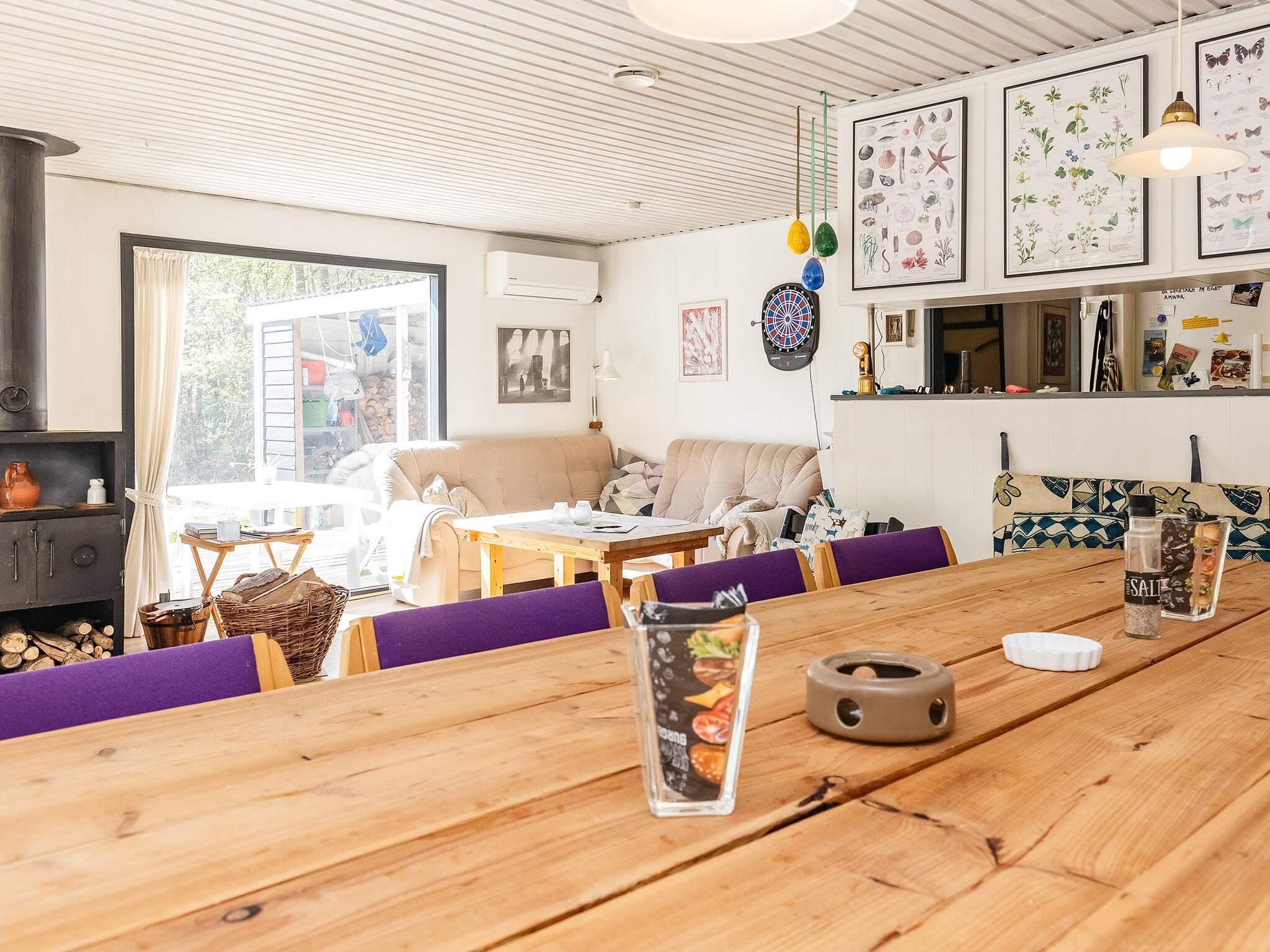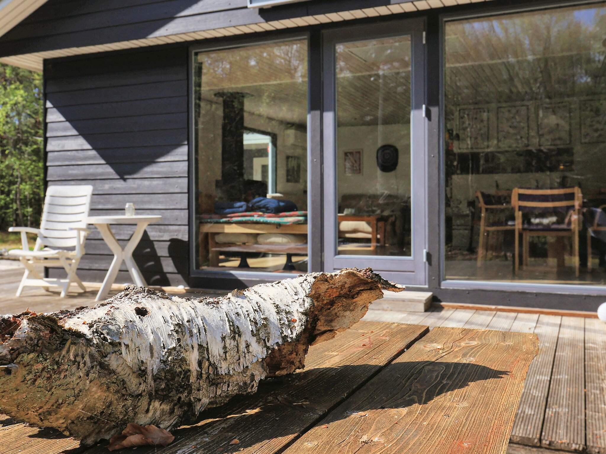 Ferienhaus in kurzer Entfernung vom Wasser und in einer ruhigen Ferienhausumgebung gelegen. Die Küche ist offen im Wohnraum integriert und die Terrasse ist überdacht. Zwei Schlafzimmer mit Doppelbetten und eines mit einem Einzelbett sowie einem Kojenbett. Im Annex befindet sich ein Zimmer mit Kojenbett und ein Badezimmer. Das große Naturgrundstück bietet sich zum Spielen an.