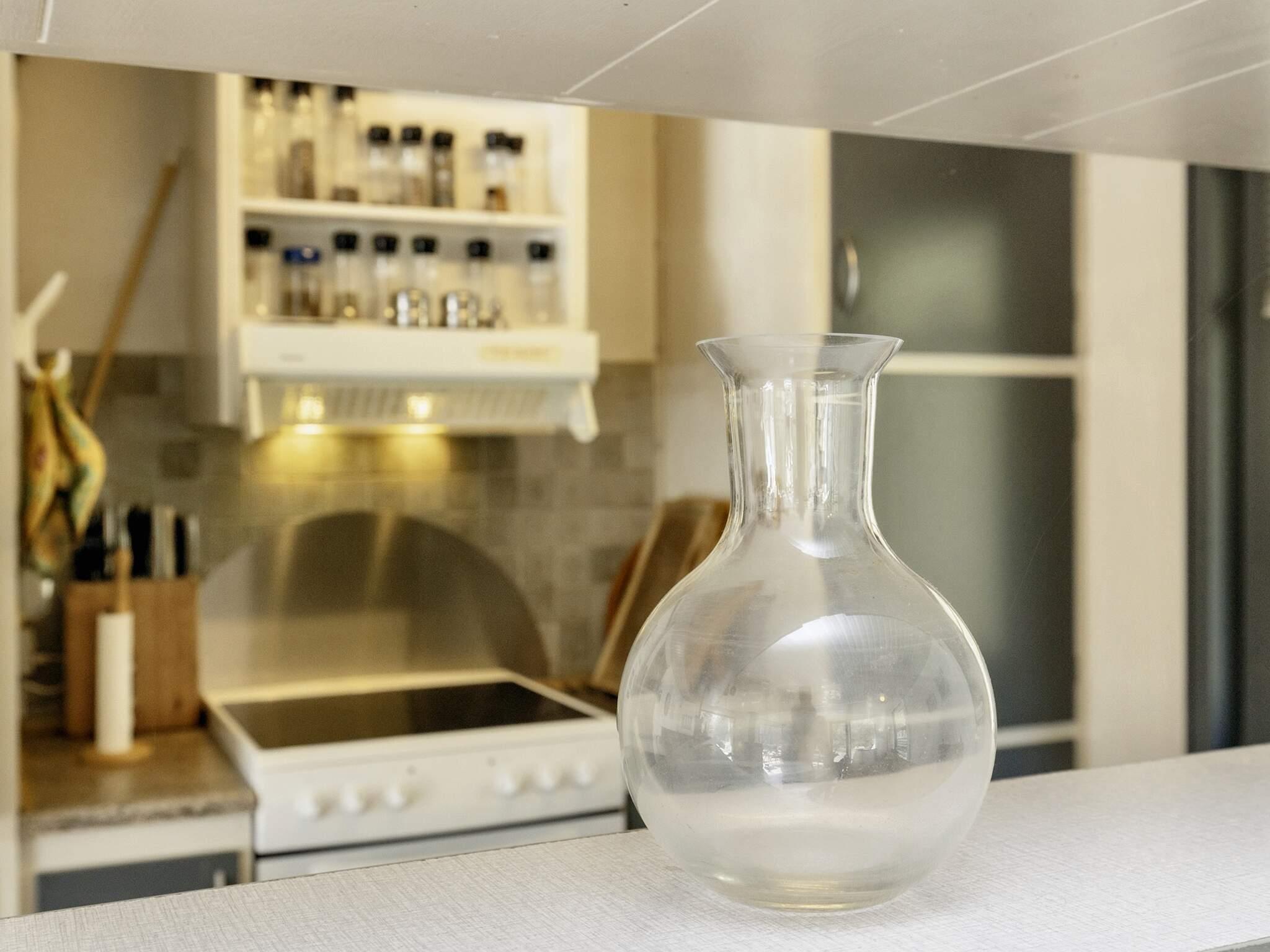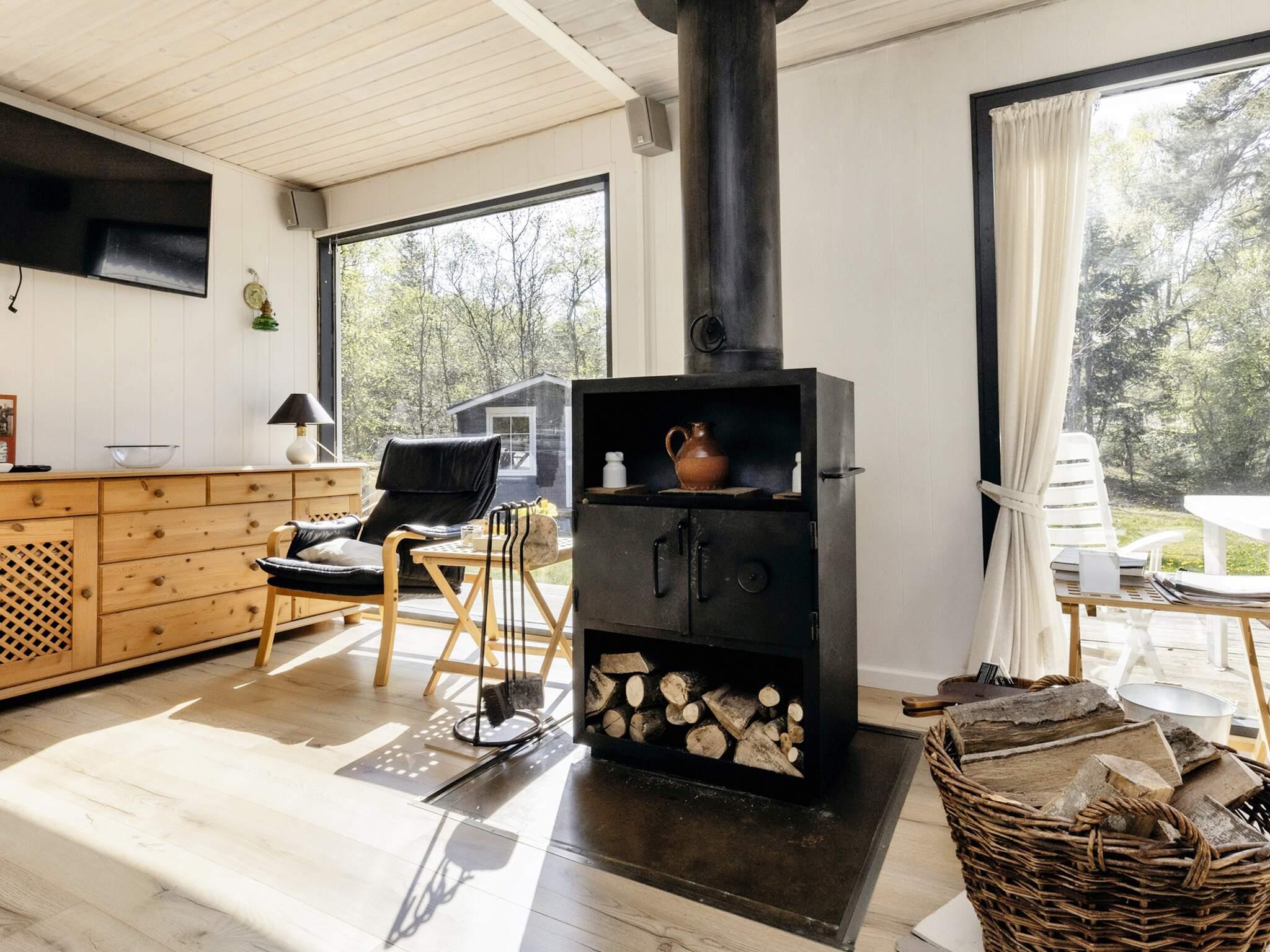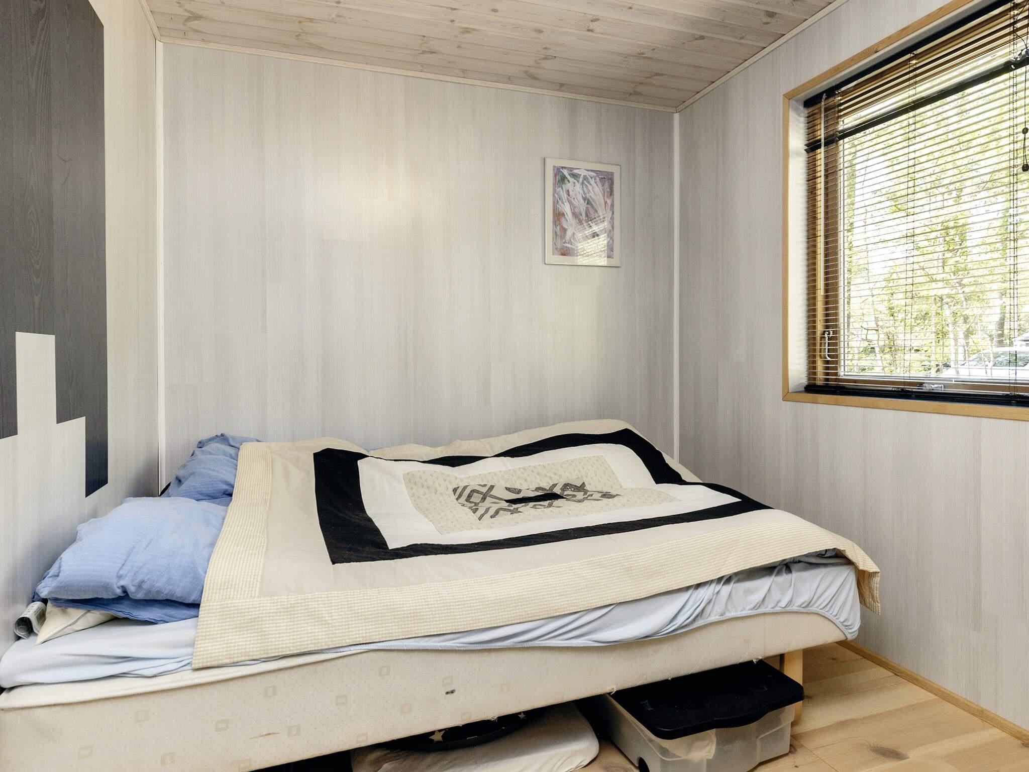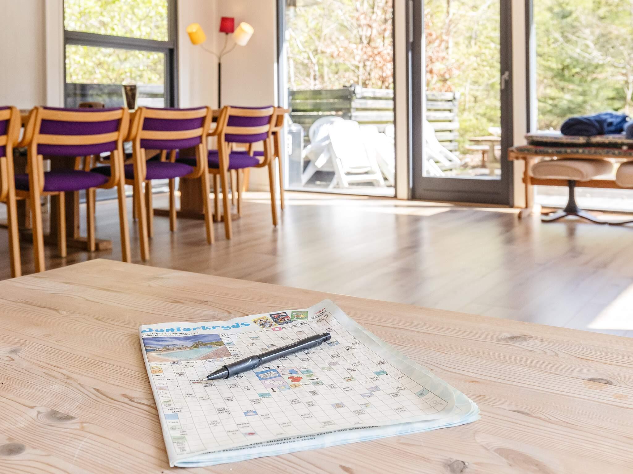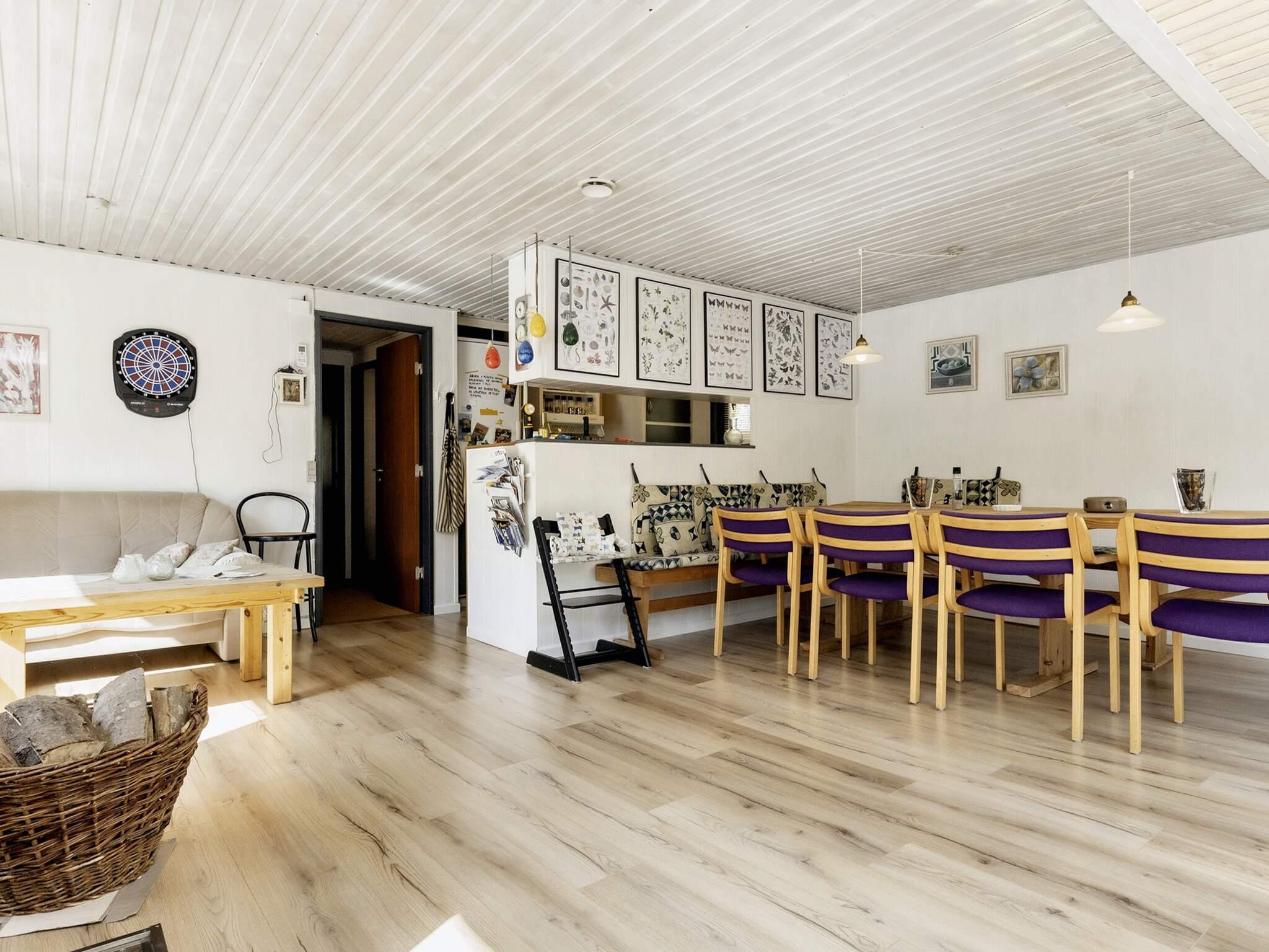 Ferienhaus in kurzer Entfernung vom Wasser und in einer ruhigen Ferienhausumgebung gelegen. Die Küche ist offen im Wohnraum integriert und die Terrasse ist überdacht. Zwei Schlafzimmer mit Doppelbetten und eines mit einem Einzelbett sowie einem Kojenbett. Im Annex befindet sich ein Zimmer mit Kojenbett und ein Badezimmer. Das große Naturgrundstück bietet sich zum Spielen an.