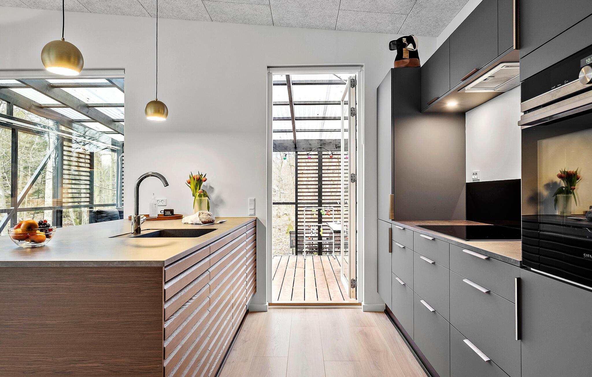 Schönes und modernes Ferienhaus mit Wintergarten, Finnischen Holzbad und Teich im Garten.