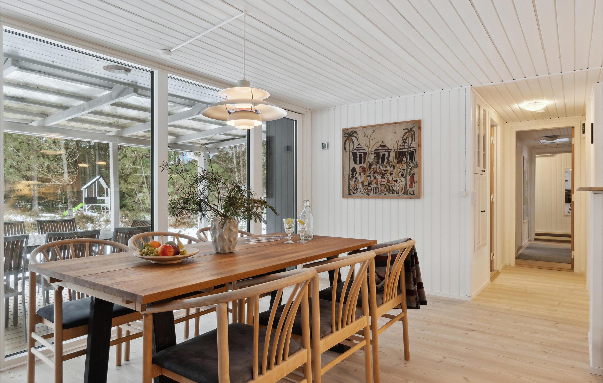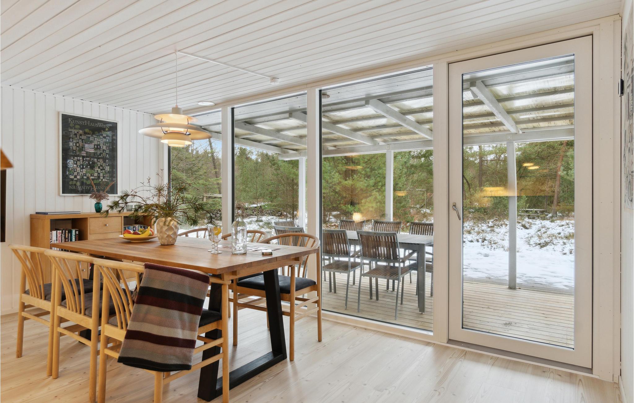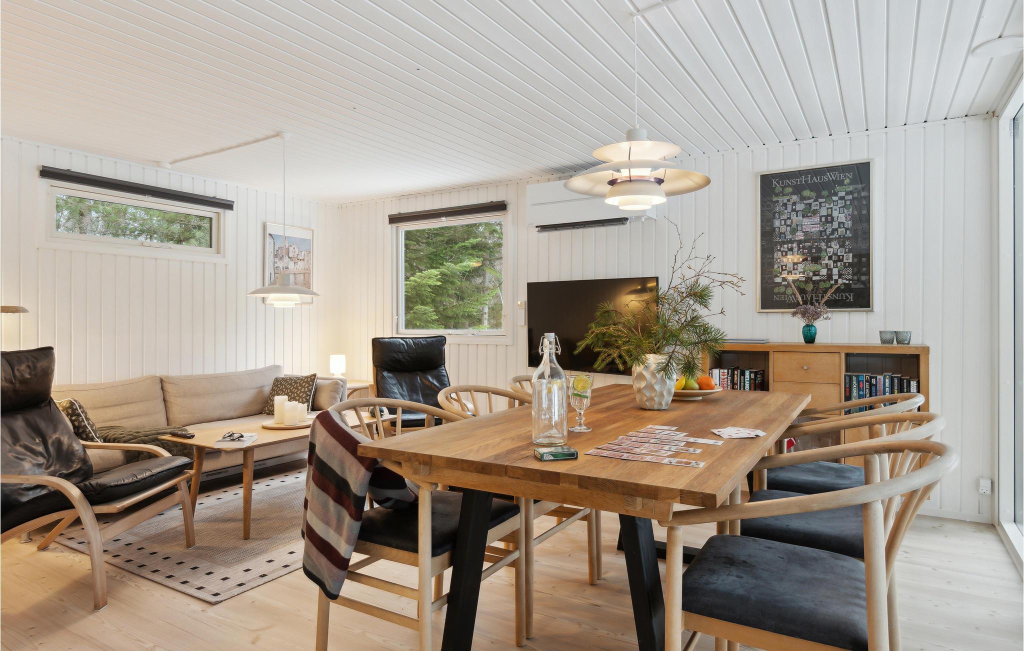 Ihr charmant eingerichtetes Ferienhaus besticht durch liebevolle Details und bietet zahlreiche Möglichkeiten im Außenbereich. Beginnen Sie Ihren Tag mit einer frisch gebrühten Tasse Kaffee und genießen Sie ein reichhaltiges Frühstück mit Ihrer Familie. Die offene Küche ist gut ausgestattet, um köstliche Mahlzeiten zuzubereiten. Beim Esstisch schaffen die großen Fensterfronten eine helle, einladende Atmosphäre. Verbringen Sie eine ruhige Familienzeit auf dem Sofa und lesen Sie Ihren Kindern spannende Geschichten vor.