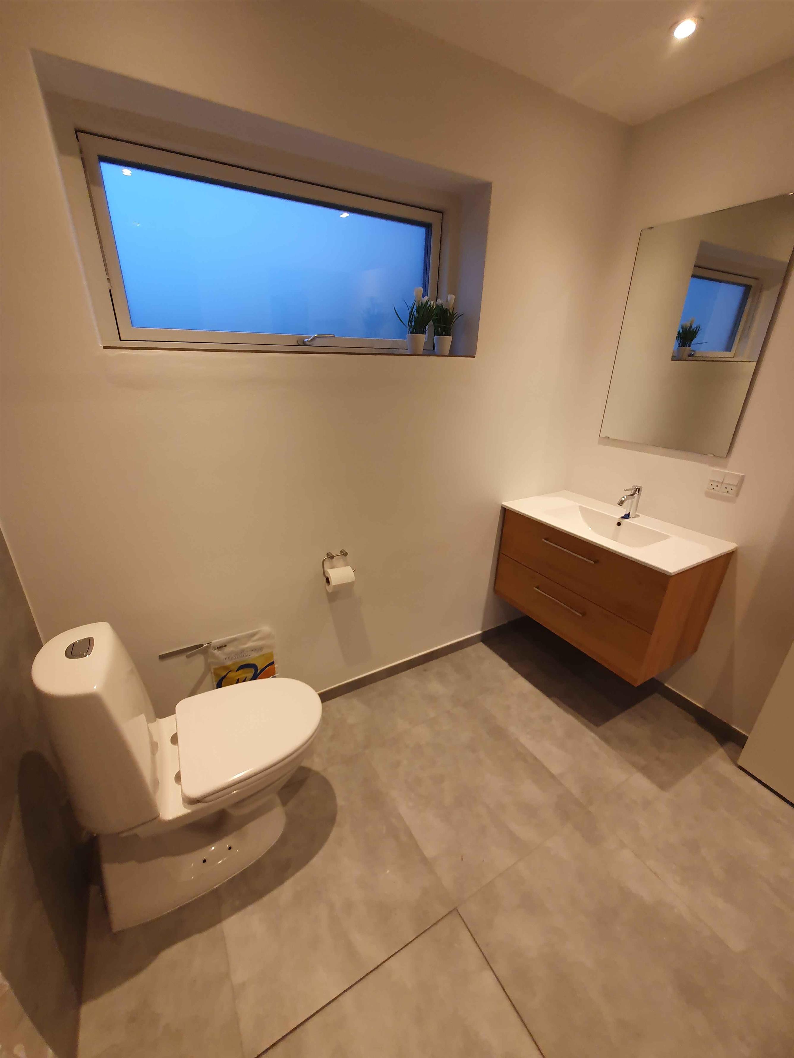 Schönes Ferienhaus auf zwei Etagen, Gäste-WC, Fernseher in allen Zimmern, vom Obergeschoss Blick auf den Hørup Hav und die Dybbøl Mølle, ein Schlafzimmer im Erdgeschoss und zwei Schlafzimmer im Obergeschoss, neues Badezimmer von 2025.