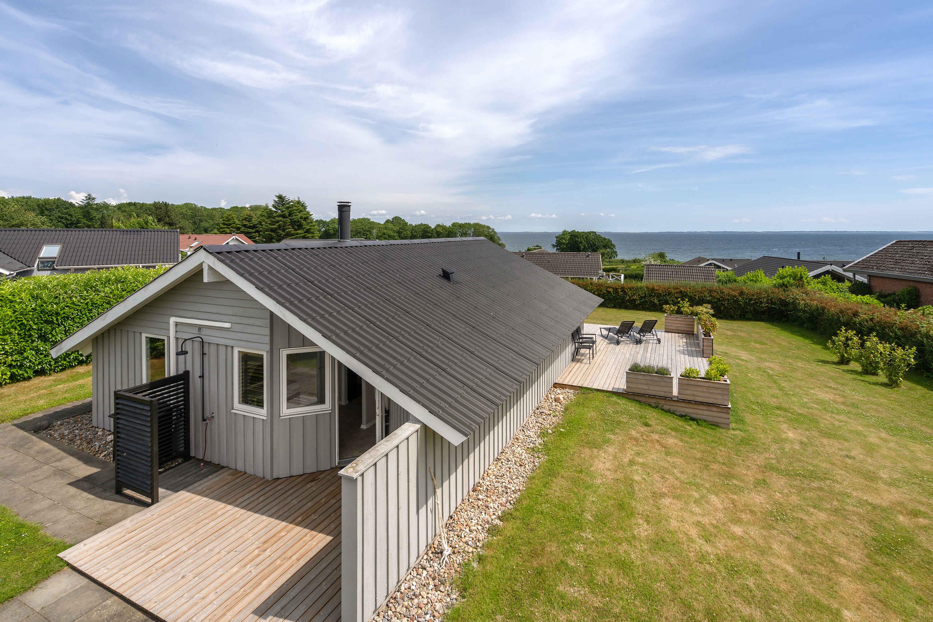 Modernes Ferienhaus mit Sauna, Whirlpool und herrlichem Meerblick in Sydals, nahe Strand und Natur.