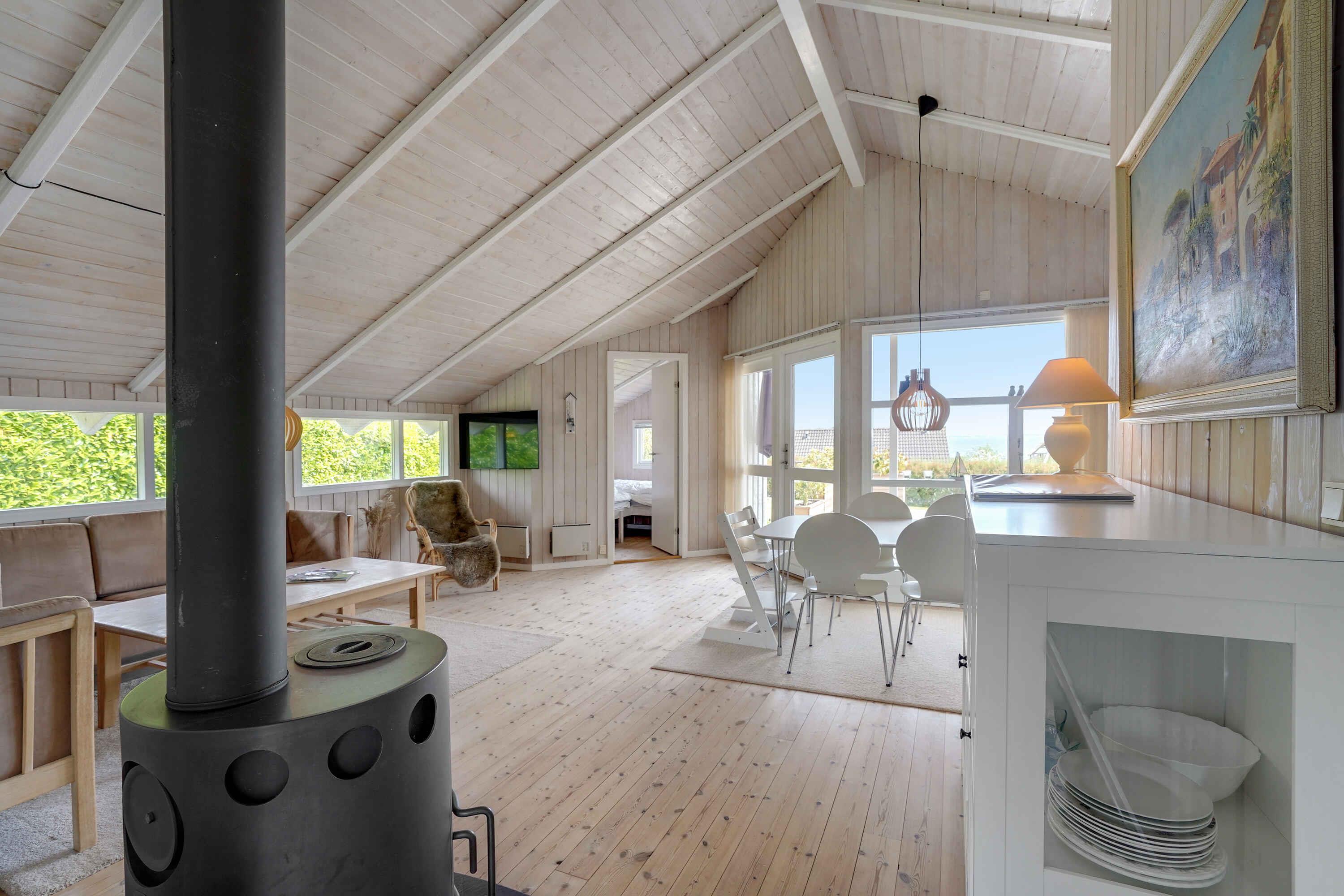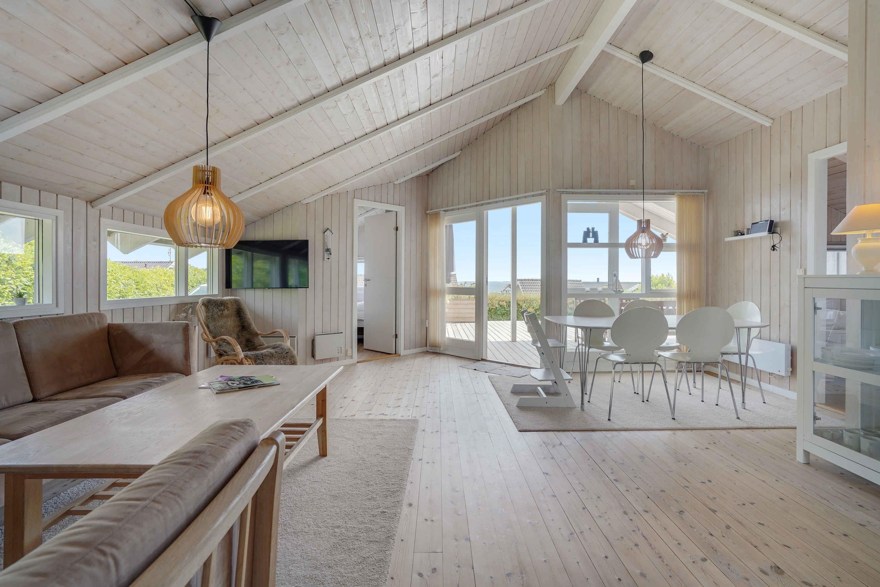 Ferienhaus mit einem schönen Wohnbereich,. Vom Wohnraum aus gelangt man auf eine charmante, südostausgerichtete Terrasse mit Meerblick. Das Haus bietet 3 Schlafzimmer, ein Badezimmer mit Dusche und Sauna sowie einen Außen-Whirlpool.