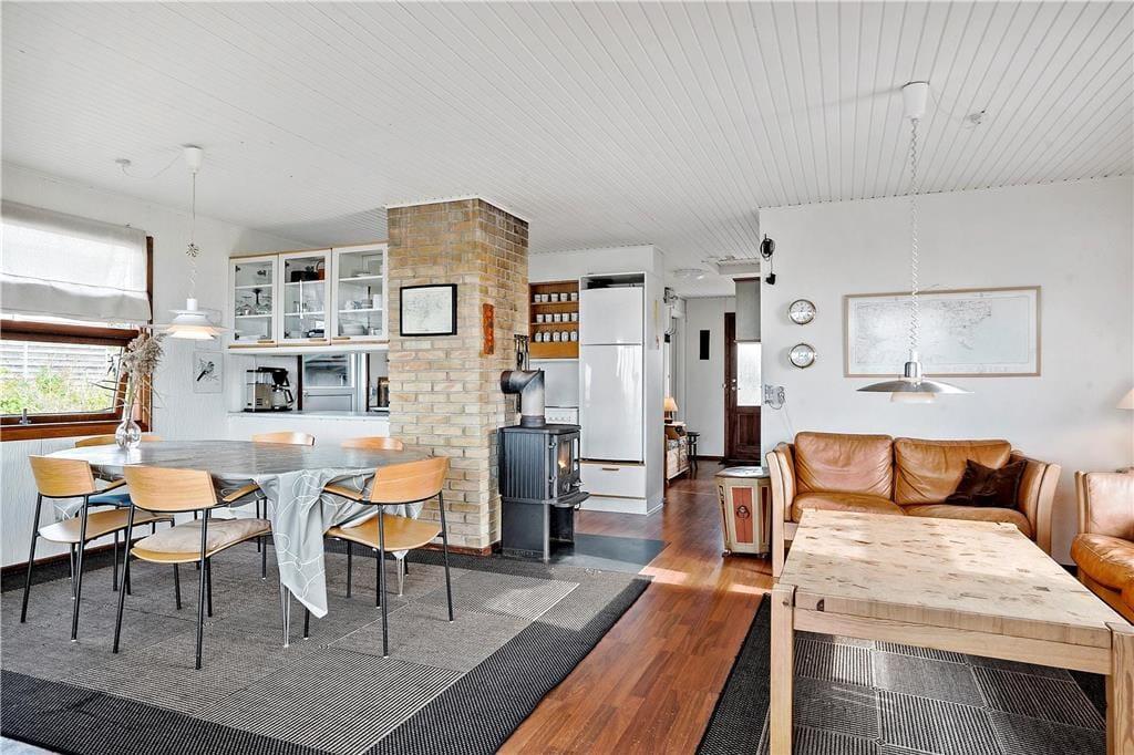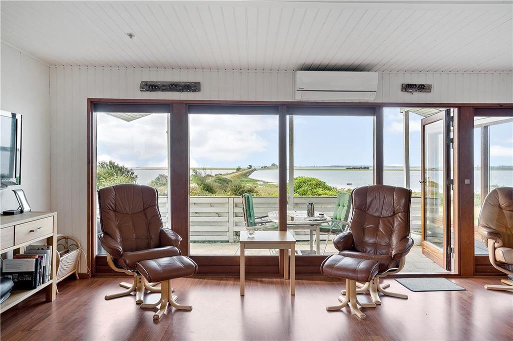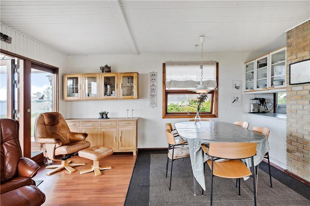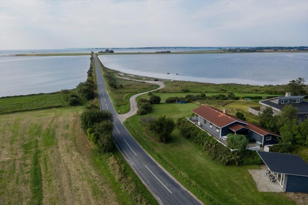 Dieses Sommerhaus liegt direkt am Damm zur Insel Alrø, die mit 8 km2 die größte der 3 Inseln im Horsens Fjord ist. Die langgestreckte, flache Insel war in der Steinzeit durch eine Senke in zwei Hälften geteilt, dies kann man nördlich der aneinander gereihten Bauernhöfe noch erahnen. Die Höfe liegen entlang der Anhöhe, auf welcher die Straße quer über Alrø verläuft.Alrø ist bekannt für seine wunderschöne Landschaft und gute Küche. Im Sommer fährt eine kleine Fahrradfähre von der Insel zur kleinen Hafenstadt Snaptun. Der Horsensfjord um Alrø ist besonders beliebt bei Windsurfern und Kajakfahrern und in Horsens befindet sich Dänemarks breiteste Fußgängerzone.