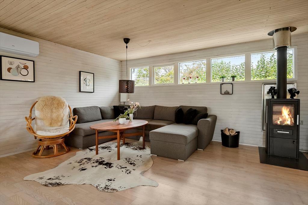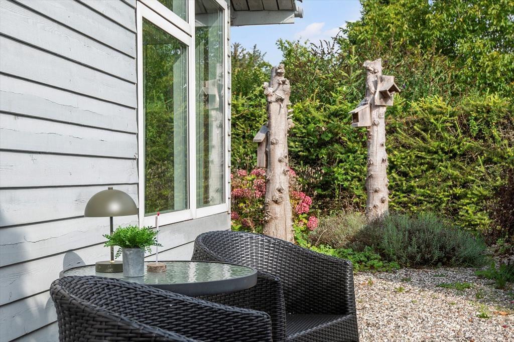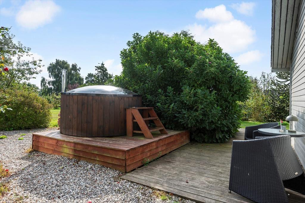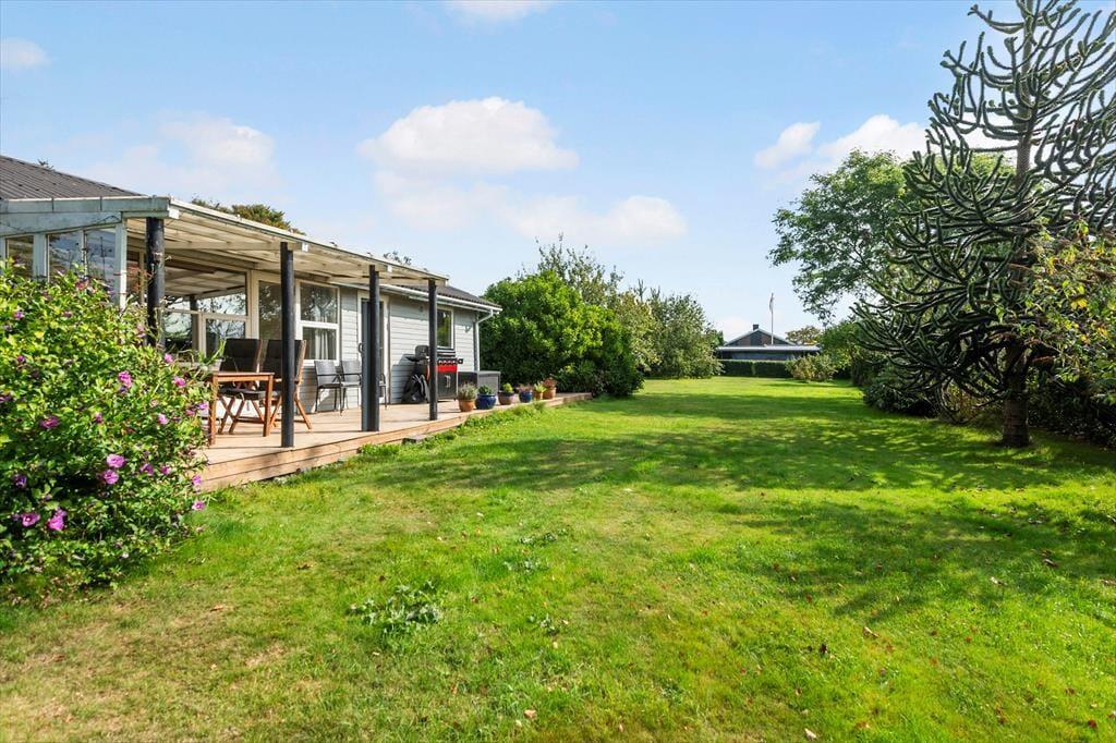 Draußen öffnet sich der Garten als grünes Paradies, umgeben von Bäumen und Vogelgesang. Auf der sonnigen Terrasse kannst du deinen Morgenkaffee genießen und einfach den Augenblick spüren. Vielleicht gönnst du dir ein Bad im Badezuber und lässt Wärme und Natur zu einem Gefühl von purer Entspannung verschmelzen. Das große, eingezäunte Grundstück bietet viel Platz – auch für deinen Hund, der sich hier sicher und frei bewegen kann. Und wenn dich das Meer ruft, ist der Strand nur einen kurzen Spaziergang entfernt.