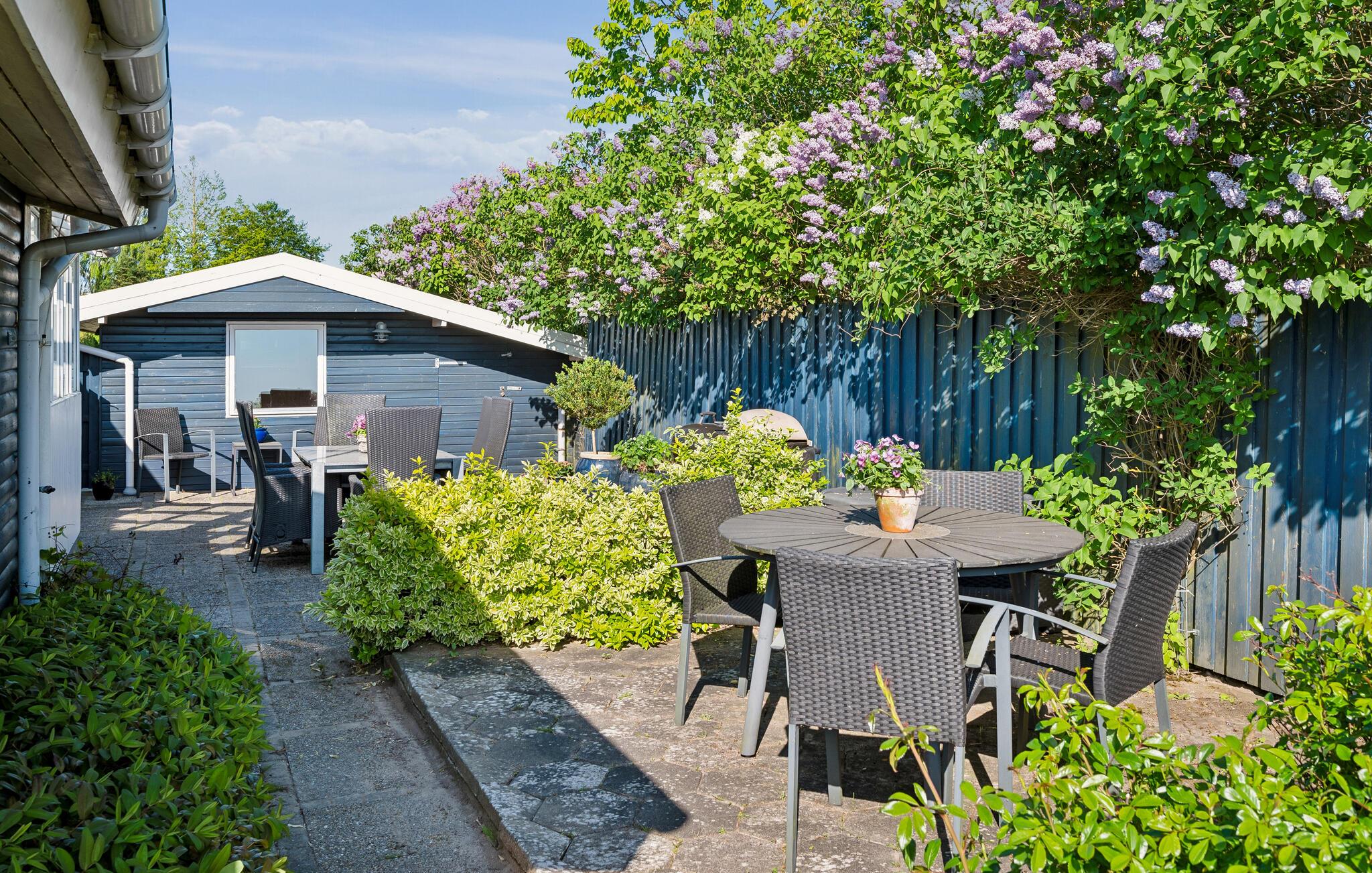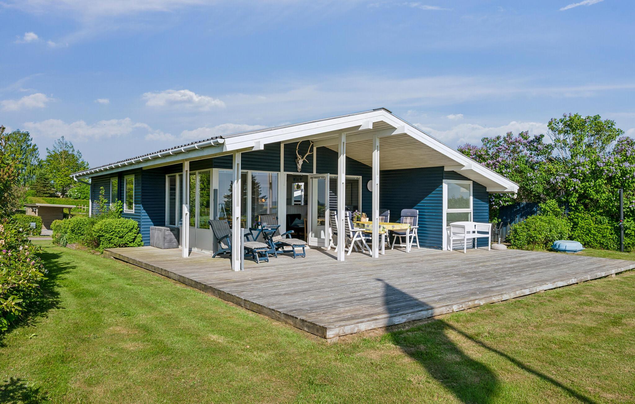 Gemütliches Ferienhaus am Wasser mit Wintergarten, großem Garten und Meerblick in Odder, Dänemark.