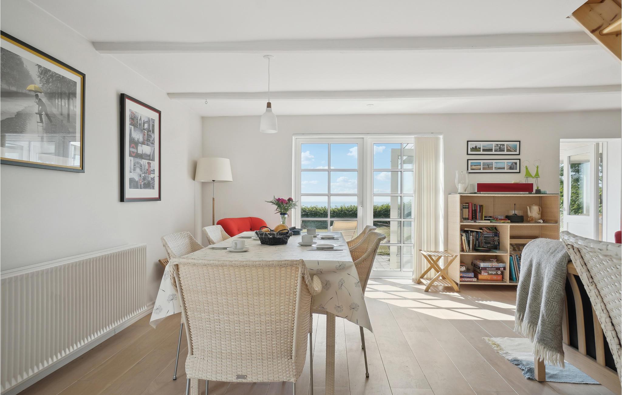 Freuen Sie sich, zusammen mit Ihren Lieben auf einen tollen Urlaub in diesem schönen Ferienhaus auf zwei Etagen. Fühlen Sie sich schon nach dem Betreten wie zuhause und entspannen sich in dem lichtdurchfluteten Wohnraum, der Ihnen mit dem angeschlossenen Wintergarten ein großartiges Wohnerlebnis bietet. Entspannen Sie sich auf dem Sofa oder spielen Sie Brettspiele mit dem Blick auf den Fjord. Auch im 1. Stock finden Sie einen schönen Fernsehbereich, wo Sie neben dem TV auch tollen Ausblick auf das Wasser haben. Entdecken Sie auch den Garten und sonnen sich auf der Terrasse, während Ihre Kinder auf dem Rasen spielen.