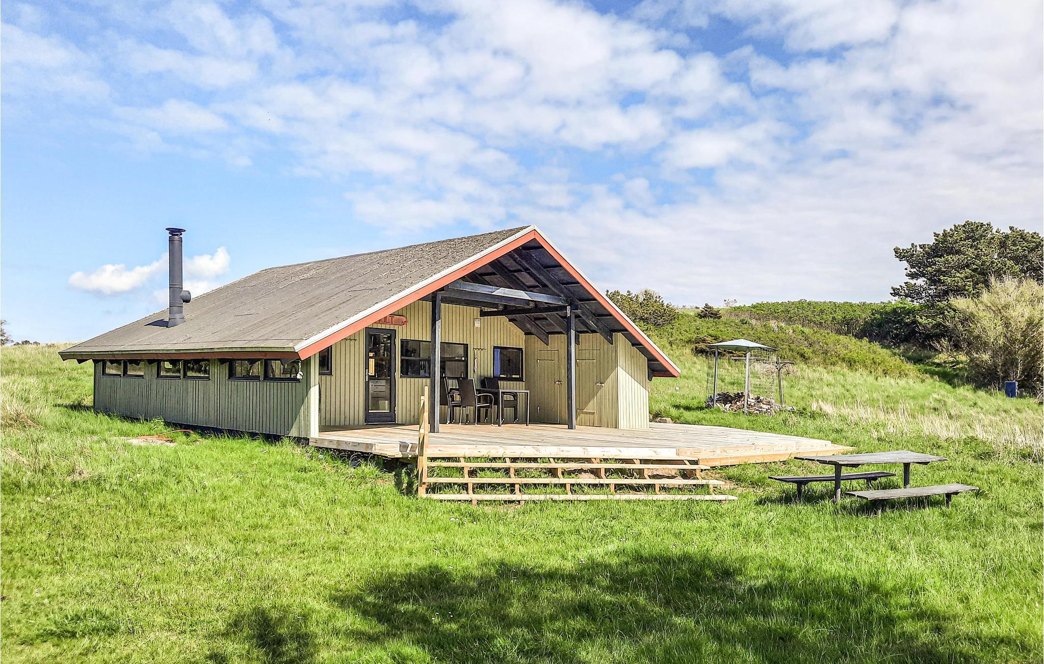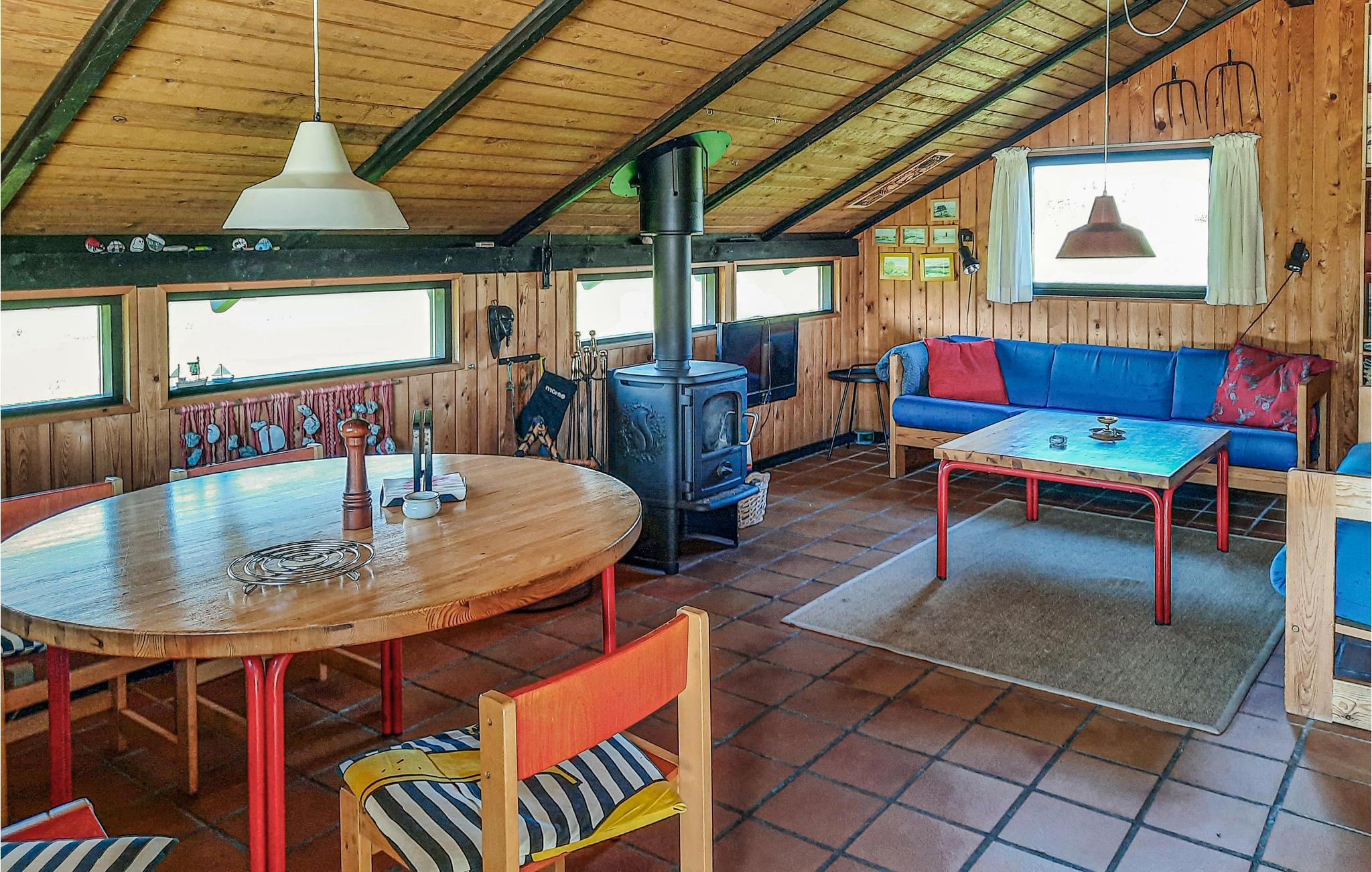 Dieses schöne Ferienhaus lädt bis zu 4 Personen ganzjährig zu einem unvergesslichen Urlaub in Strandnähe ein. Die Holzverkleidung der Innenräume und die Dachschrägen sorgen für besondere Gemütlichkeit im Inneren des Ferienhauses. Im Wohnzimmer können Sie behaglich auf den Sofas zusammen sitzen, während in der offenen Küche eine leckere Mahlzeit zubereitet wird.