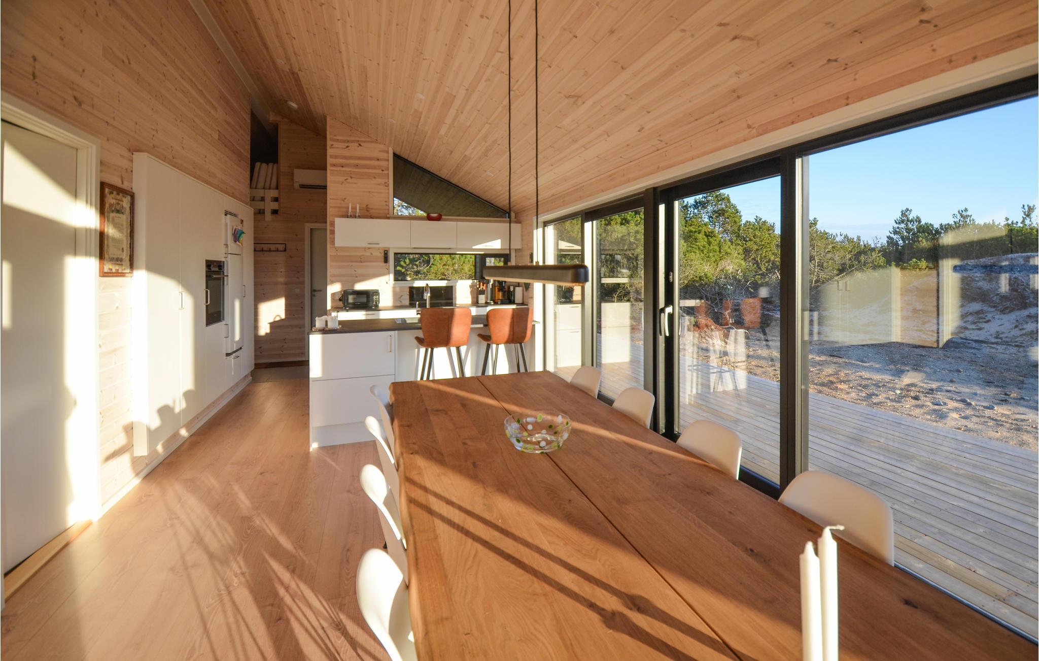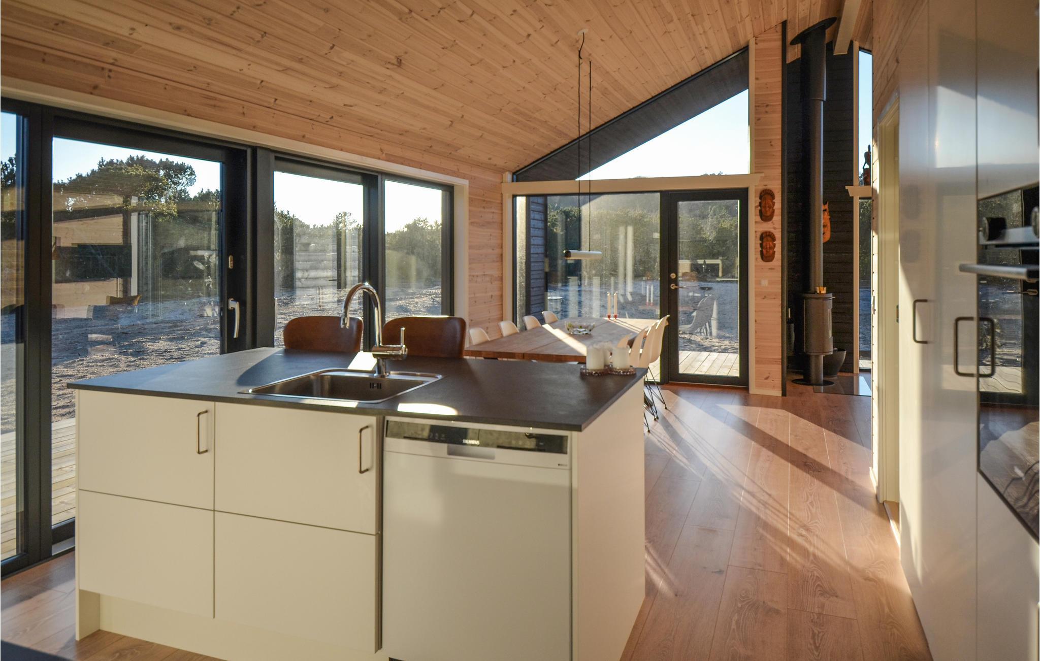 Verbringen Sie einen unvergesslichen Urlaub in diesem schönen und komfortablen Ferienhaus unweit des Sandstrandes. Erfreuen Sie sich an Sonnenstrahlen, die durch die großen Fenster in den offenen Wohnraum, mit hohen Decken gelangen. Die behagliche Atmosphäre wird durch die hochwertigen Möbel und den Holzofen ergänzt. Die wohltuende Willkommenswärme lädt Sie zu gemeinsamen Koch-, Spiele- und Filmabenden ein und lässt Sie zur Ruhe kommen. Die Sommertage können Sie auch auf der Terrasse genießen, setzen Sie sich in die Sonne und schauen Ihren Kindern beim Spielen im Garten zu.