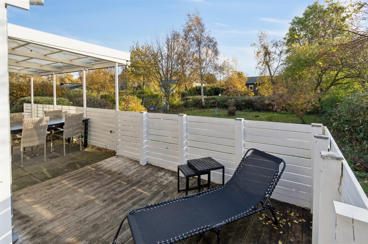 Die große Terrasse ist teilweise überdacht und so ausgerichtet, dass du sowohl die Vormittags- als auch die Nachmittagssonne genießen kannst. Der Garten ist hell und bietet viel Platz für Ballspiele oder einfach zum Entspannen in der Sonne.