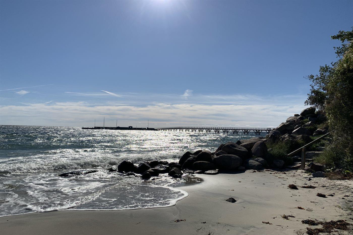 Das Haus liegt im ehemaligen Fischerdorf Arnager – hier findest du Strand, Küste und einen kleinen Inselhafen mit einer langen Holzbrücke, die ein ganz besonderes Erlebnis bietet, wenn du hinausgehst, um zu sehen, ob vielleicht gerade einer der wenigen verbliebenen Fischer zurückgekehrt ist.