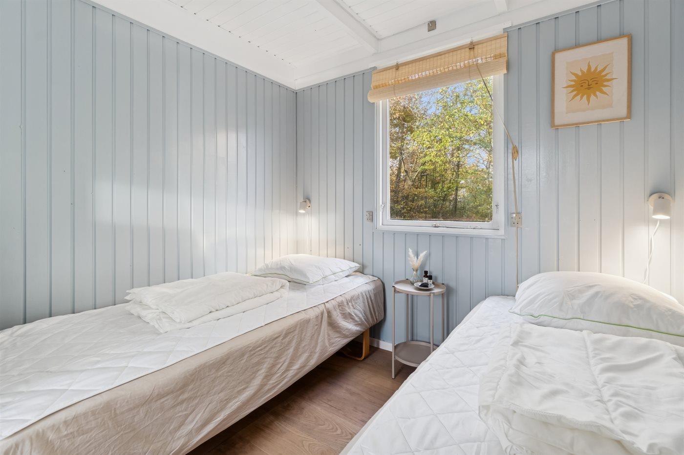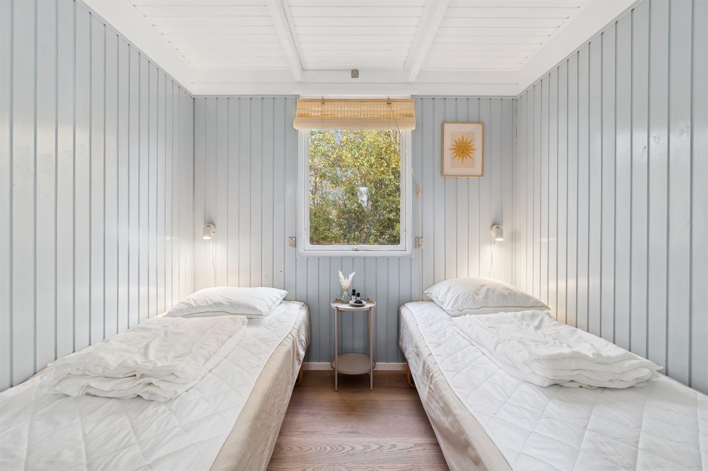 Die Schlafplätze verteilen sich auf 2 Schlafräume. 2 Schlafplätze in einem Doppelbett. 2 Schlafplätze in Einzelbetten.