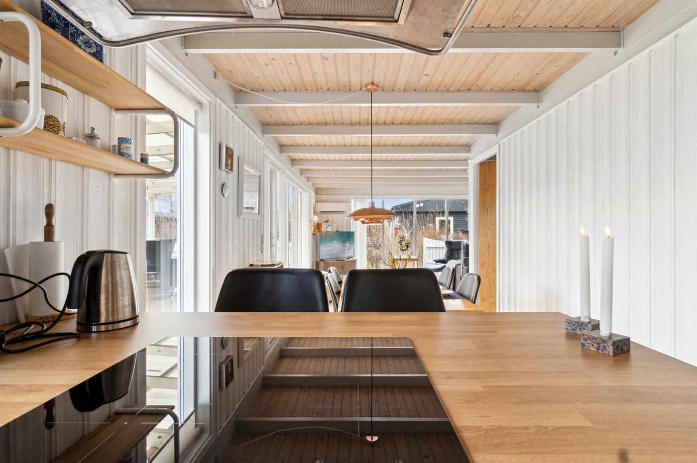 Dieses schöne Ferienhaus zeichnet sich durch seine helle und freundliche Einrichtung aus und liegt im alten Fischerdorf Arnager in einem Ferienhausgebiet direkt an einem Sandstrand, der Steilküste und dem fabelhaften Inselhafen. Hier findest du eine der längsten Brücken Skandinaviens, die hinaus zu dem kleinen Hafen führt, wo rund um die neu errichtete Sauna reges Treiben herrscht.