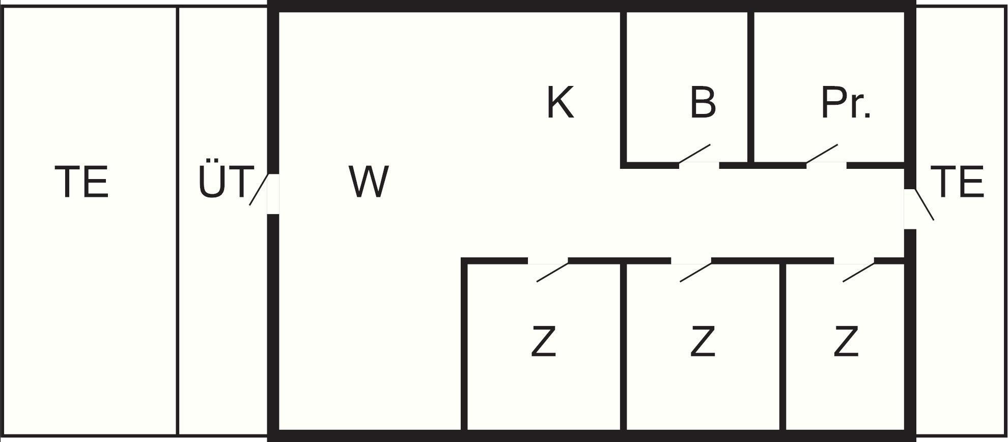 Off. Küche: E-Herd, Kühlschr. m. Gefrierfach, Mikrow., Abzugsh., Kaffeem.