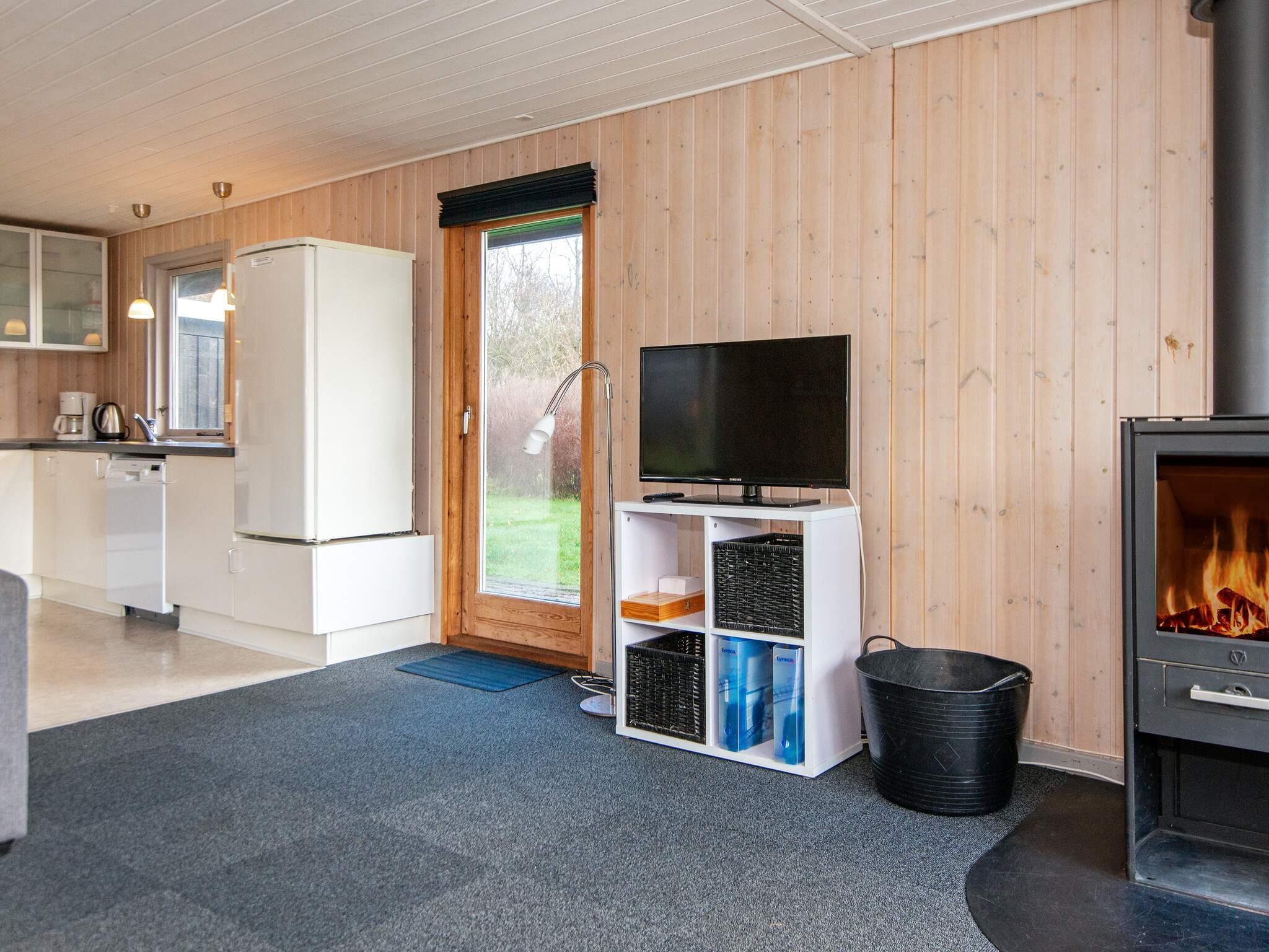 Das Ferienhaus wurde zuletzt 2008 komplett renoviert und bietet einen praktischen, gefliesten Eingangsbereich mit Fußbodenheizung, zwei Schlafzimmer mit jeweils zwei Schlafplätzen in Betten, ein Badezimmer mit Dusche/WC und angenehmer Fußbodenheizung sowie einen hellen, offenen Küchen-/Wohnbereich für das Familienleben, u.a. ausgestattet mit Geschirrspüler, klimafreundlicher Wärmepumpe und Holzofen. Von hier aus hat man Zugang zur nach Südosten ausgerichteten Terrrasse.
