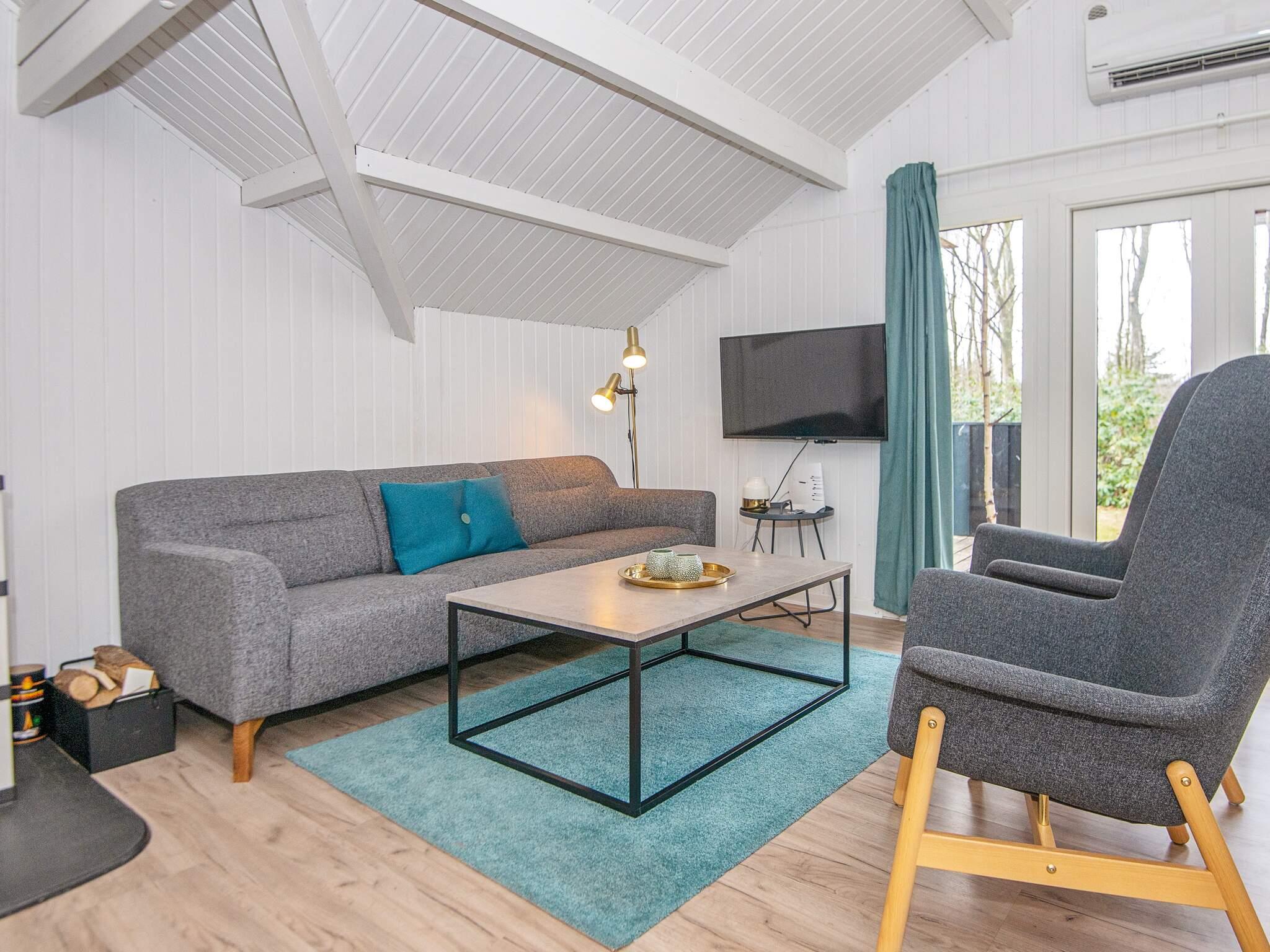 Und: Terrasse, Carport, E-Heiz., Luft-Luft-Wärmepumpe, Spielgeräte, Naturgrundst. m. Bäumen 873 m2, gemütliche Möblierung, Ferienhausgebiet