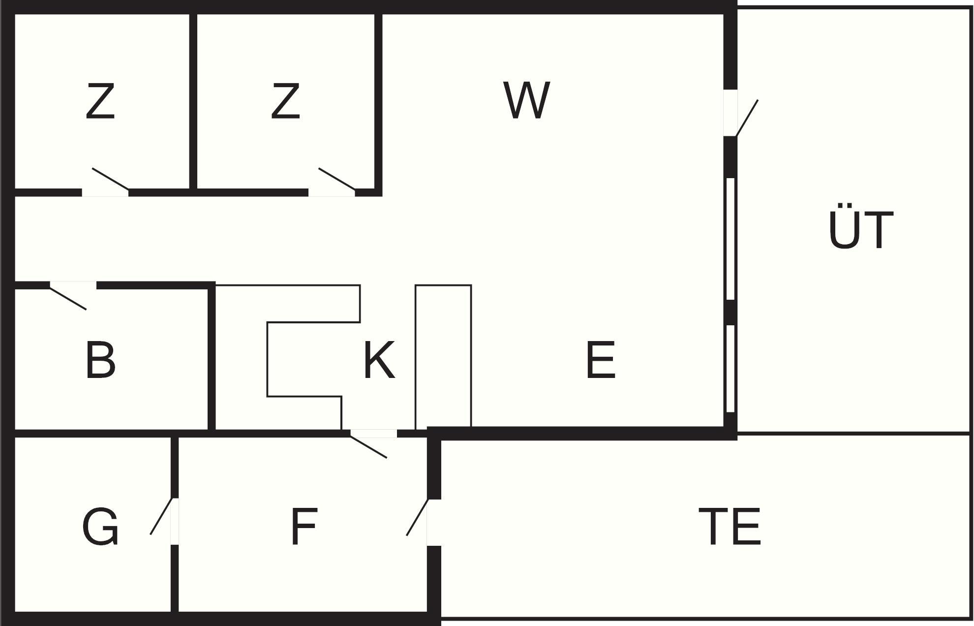Off. Küche: E-Herd, Kühl-Gefrier-Kombi, Kaffeem.
