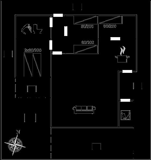 Die Schlafplätze verteilen sich auf 3 Schlafräume. 2 Schlafplätze in einem Doppelbett. 3 Schlafplätze in Einzelbetten.