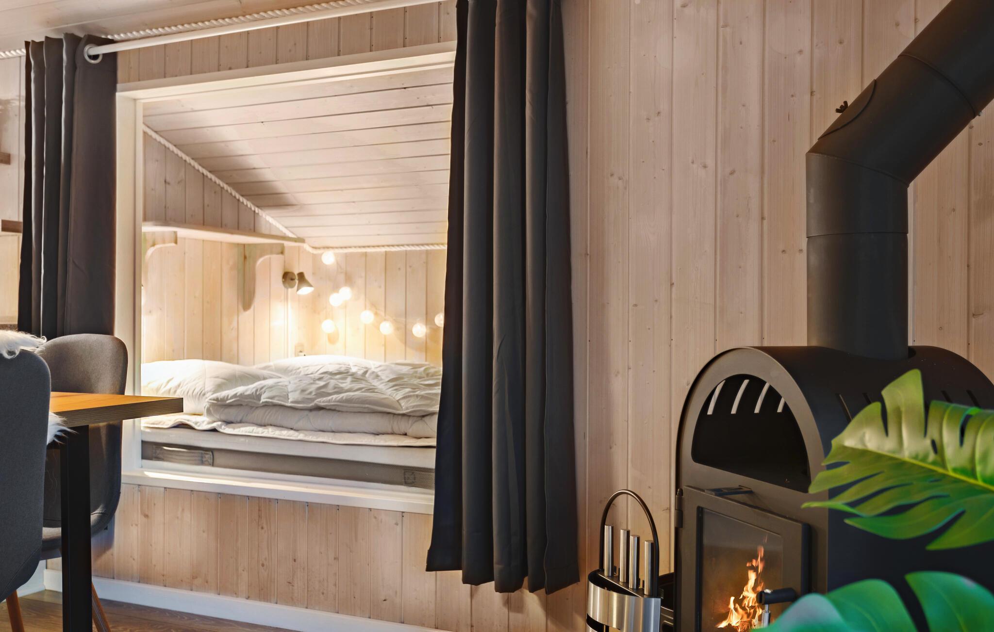 Das einladende Holzhaus empfängt seine Gäste in idyllischer Lage in Arrild Ferieby und ist der ideale Ort für einen wunderbaren Urlaub mit der Familie. Das Haus ist hell und gemütlich eingerichtet, freuen Sie sich auf gemeinsame Mahlzeiten am langen Esstisch, ein Nickerchen im Alkoven und lange Abende am behaglich prasselnden Kaminofen.