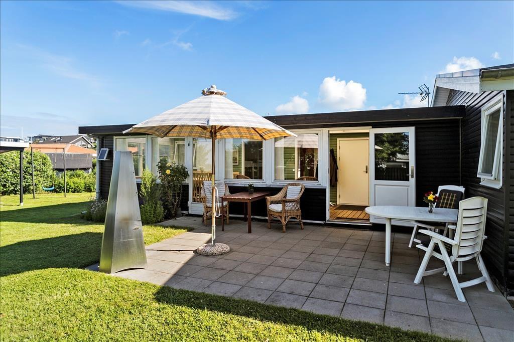 Direkt hinter dem hinteren Garten liegt ein schöner Spielplatz, der das Herz eines jeden kleinen Kindes höher schlagen lässt. Hier gibt es eine Bocciabahn und Tore, sodass unterhaltsamen Familienaktivitäten absolut nichts im Wege steht. Sie wohnen in der beschaulichen Ferienhauskolonie As Hedegaard, die mit einer schön ruhigen, entspannten Urlaubsstimmung zu überzeugen weiß. Lediglich 300 Meter trennen Ihr Ferienhaus von einem der besten Badestrände Ostjütlands. Empfehlen möchten wir Ihnen auch einen Abstecher in den Hafenort Juelsminde, der per Pkw binnen 5 Minuten erreicht ist. Juelsminde lockt mit einem stimmungsvollen, wunderbar maritimen Sportboothafen, mehreren Restaurants, einem Eiskiosk, einer Minigolfanlage und vielem mehr.