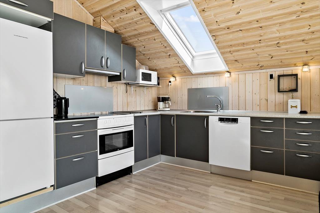 Wir heißen euch willkommen in diesem tollen Ferienhaus bei As Vig Strand in der Nähe von Juelsminde. Hier habt ihr Platz für die ganze Familie, da das Haus über Schlafplätze für sechs Erwachsene plus ein Kind verfügt. Im Ferienhaus gibt es eine sehr schöne offene Küche, mit Blick auf den Wohnbereich, sowie den Essbereich.