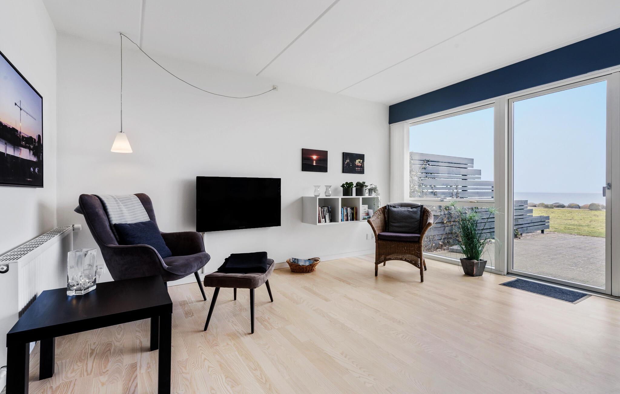 Modernes Ferienhaus direkt am Wasser mit Panoramablick und Strandnähe in Assens, Dänemark.