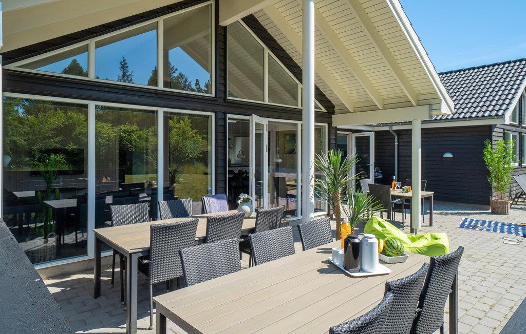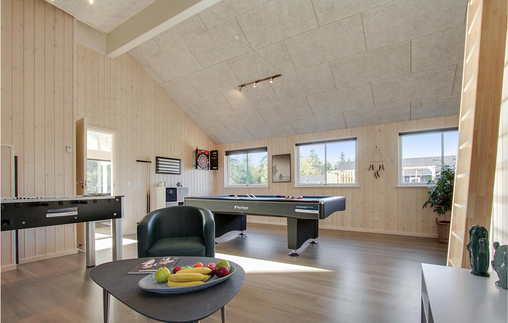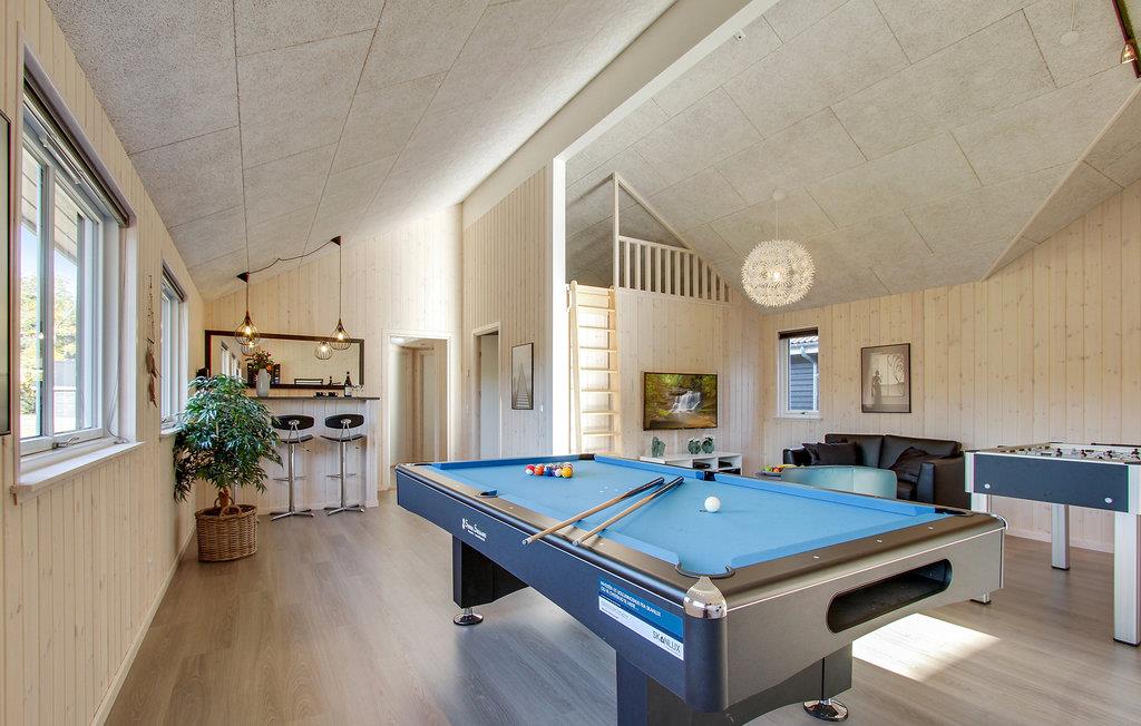 Modernes Ferienhaus mit Pool, Whirlpool, Sauna und Aktivitätsraum für einen erholsamen Familienurlaub in Dänemark.