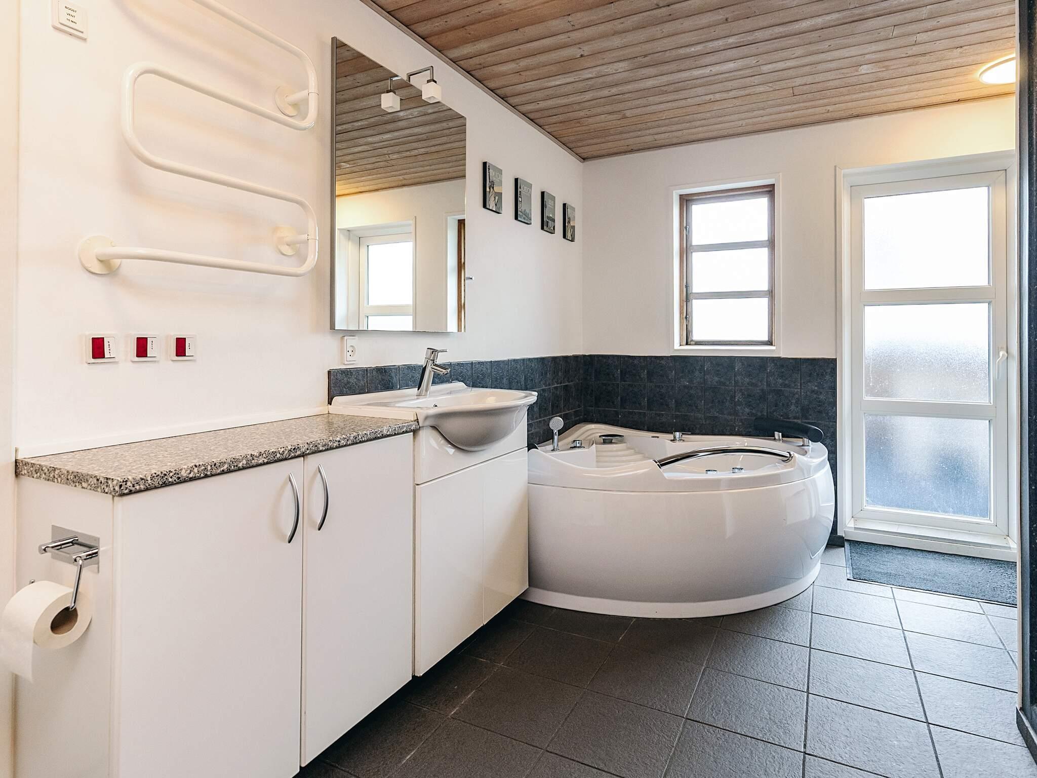 Ferienhaus mit Sauna und Whirlpool drinnen sowie Badezuber und