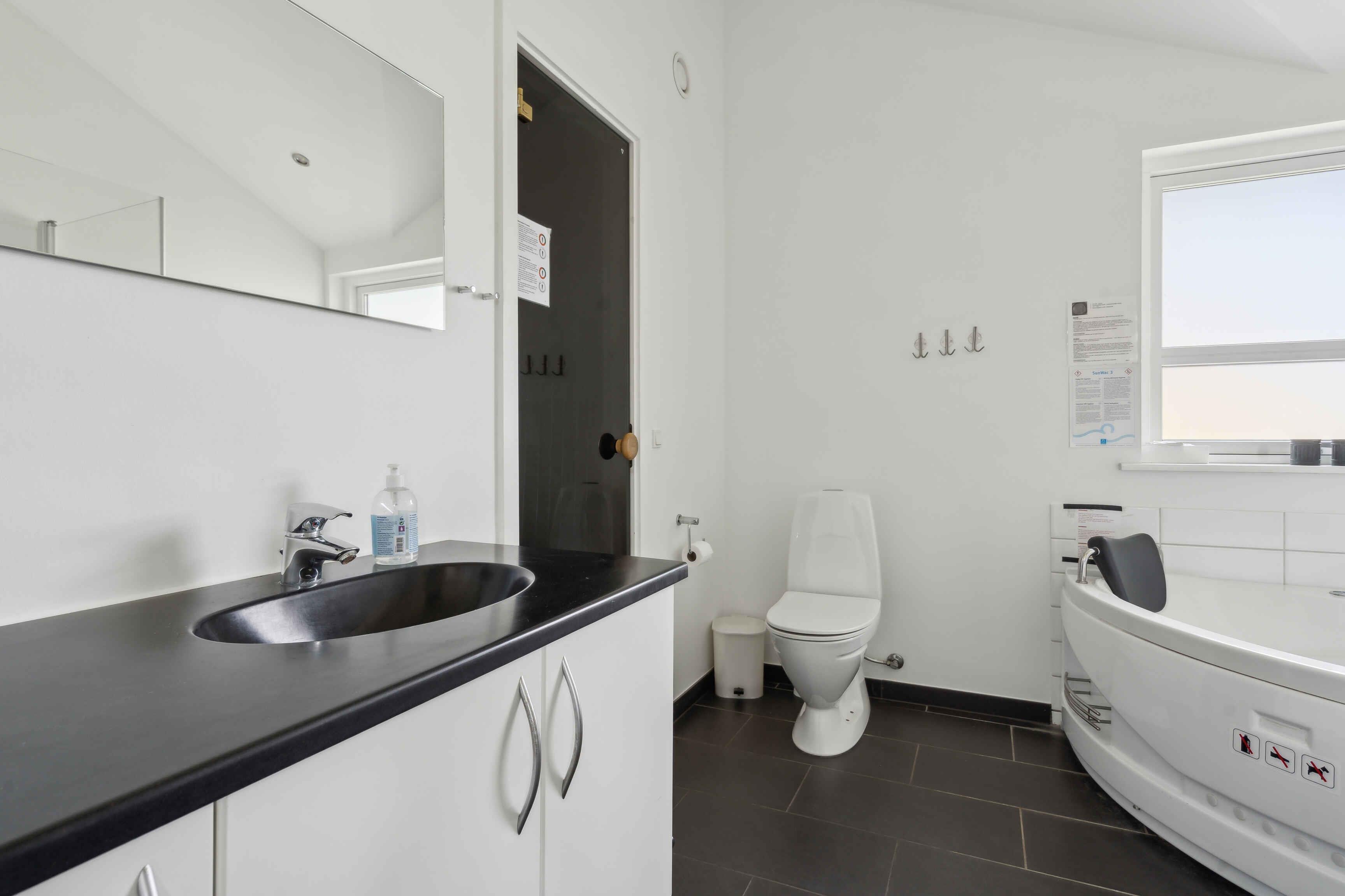 Mit Panoramablick auf das Meer vom Haus und vom Grundstück aus ist dieses Ferienhaus der ideale Ausgangspunkt für einen erholsamen Urlaub inmitten der Natur. Es liegt in einer ruhigen Feriengegend nahe der Küste und offener Landschaft – perfekt zum Entspannen und Spazierengehen. Das Haus bietet Platz für bis zu 10 Personen, verteilt auf 4 Schlafzimmer und ein Dachgeschoss mit 2 Matratzen – ideal für Familien oder Freundesgruppen. Fußbodenheizung im ganzen Haus, Kaminofen, Whirlpool und moderne Ausstattung sorgen das ganze Jahr über für hohen Komfort. Die Küche ist vollständig mit Geschirrspüler, Heißluftofen und Mikrowelle ausgestattet. Auch Waschmaschine, Trockner und Hochstuhl stehen zur Verfügung – ideal für Familien mit kleinen Kindern. Die Umgebung lädt zu Naturerlebnissen ein und bietet viele Möglichkeiten. Nur 500 Meter entfernt liegt das Meer, ideal zum Steinesammeln oder einfach die Aussicht genießen. Der kinderfreundliche Sandstrand ist nur 1,5 km entfernt – perfekt zum Baden und Spielen. Zahlreiche Ausflugsziele wie Schlösser, Hafenstädte und Wanderwege in schöner Natur liegen in der Nähe. Ein Golfplatz ist 6 km entfernt, der nächste Einkaufsladen 4 km – ruhig gelegen, aber mit allem in Reichweite. Auf dem Grundstück gibt es sowohl eine offene als auch eine überdachte Terrasse mit Grill. Genießen Sie den Urlaub im Freien – bei jedem Wetter. Parkplätze befinden sich direkt am Haus. Bis zu zwei Haustiere sind willkommen.