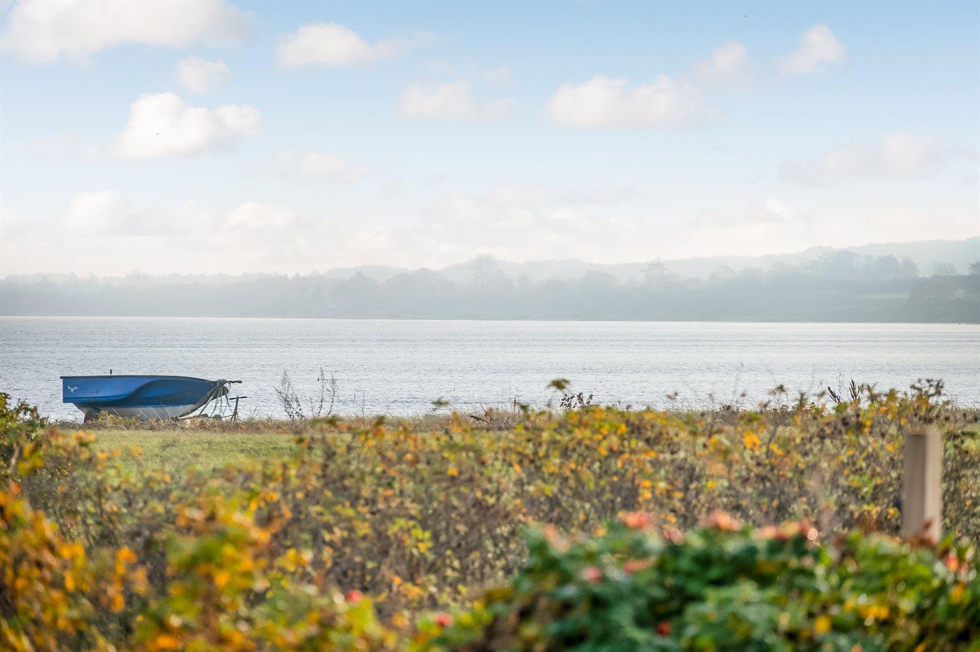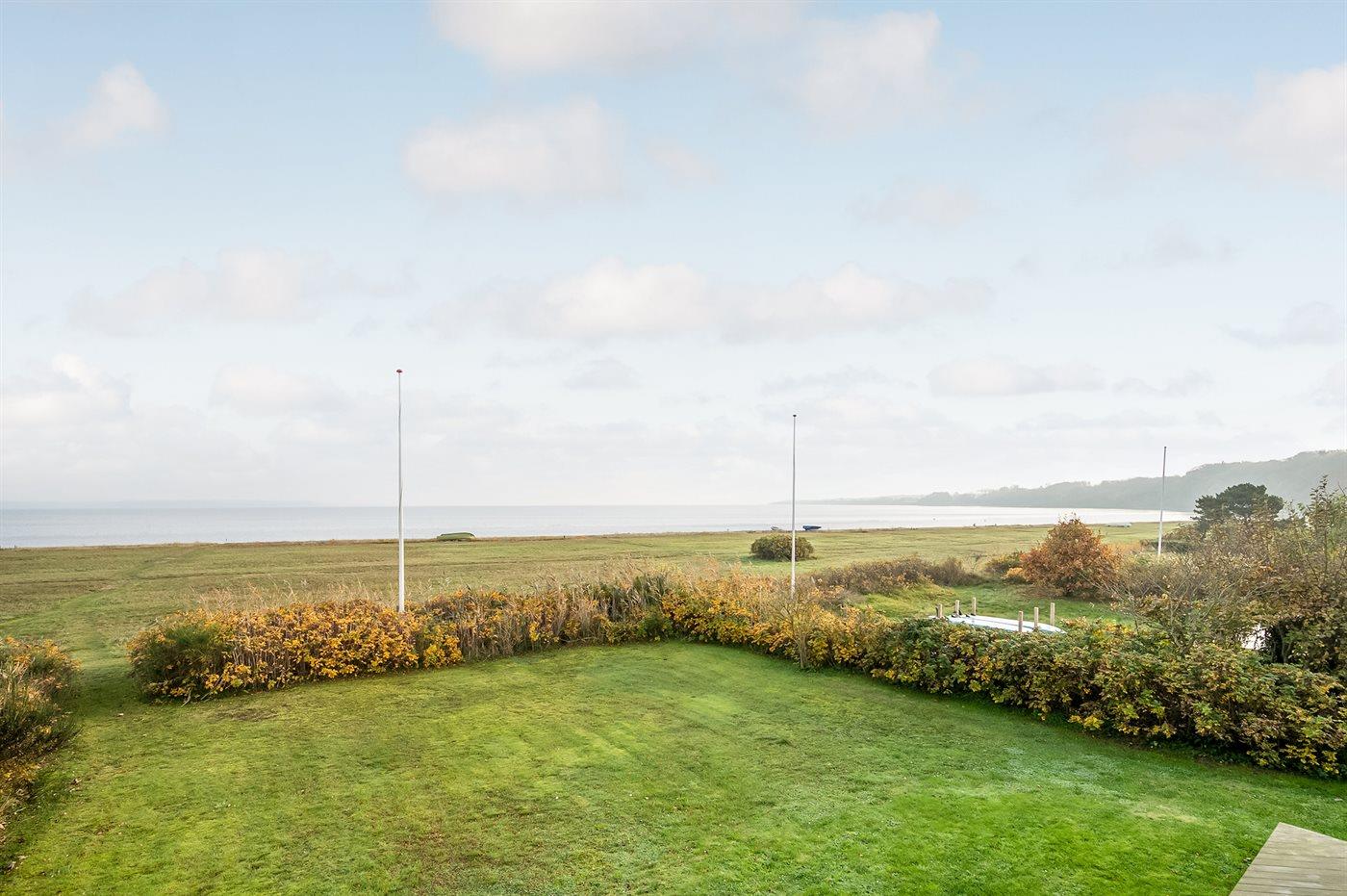 Modernes Ferienhaus mit Panoramablick am Vejle Fjord, ideal für Familienurlaub in ruhiger Lage und mit direktem Wasserzugang.