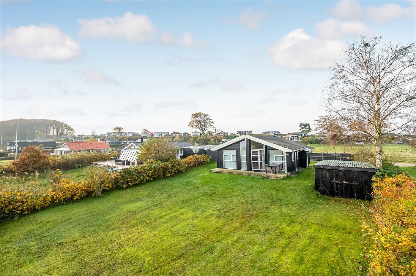 Die Ferienunterkunft liegt auf einem 500 m² großen Naturgrundstück. Die Entfernung zum Fjord beträgt 50 m. Die nächste Einkaufsmöglichkeit liegt 1000 m entfernt. Es steht ein 10 m² Terrassenareal zur Verfügung. Außerdem gibt es 10 m² überdachte Terrasse. Geräteraum. Parkplatz auf dem Grundstück.