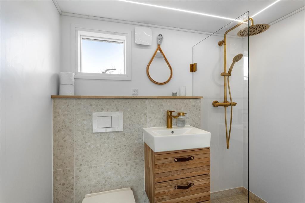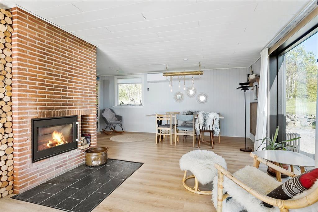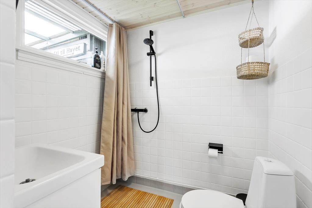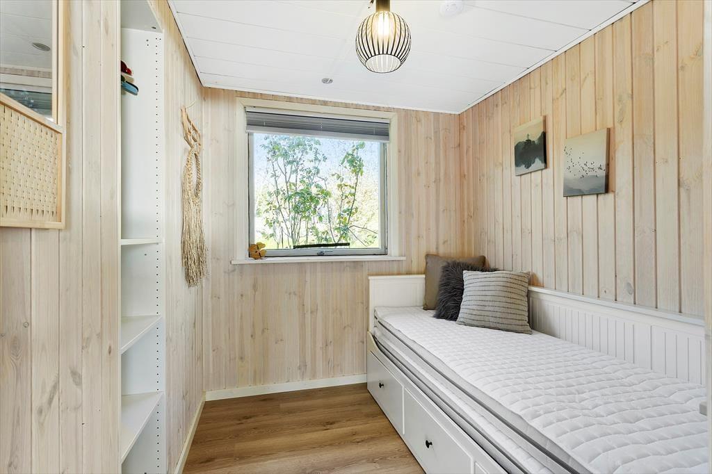 Sobald Sie das Ferienhaus betreten, werden Sie sofort von einem beeindruckenden Blick auf das Wasser begrüßt, der durch die großen Fenster im Wohnzimmer strahlt. Das offene Wohnzimmer ist hell eingerichtet, mit modernen Möbeln und einem Kaminofen, der an kühleren Tagen für eine gemütliche Atmosphäre sorgt. Hier können Sie sich entspannen und den atemberaubenden Blick auf den Fjord genießen, egal ob Sie im Wohnzimmer sitzen oder im Essbereich, von dem aus Sie ebenfalls die Natur draußen sehen können. Das Ferienhaus bietet eine gut ausgestattete Küche in offener Verbindung mit dem Esszimmer, was es einfach macht, gemeinsam Mahlzeiten zu genießen und gemütliche Momente zu erleben. Die beiden Schlafzimmer sind sowohl hell als auch komfortabel, sodass Sie eine erholsame Nachtruhe genießen und mit dem wunderbaren Blick auf das Wasser aufwachen können. Das Badezimmer ist modern und funktional mit einer Dusche, damit Sie erfrischt und bereit für den Tag sind. Im neu erbauten Anbau finden Sie ein eigenes Bad, Toilette und ein Doppelbett.