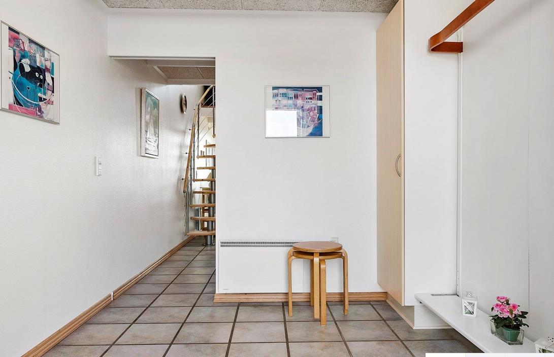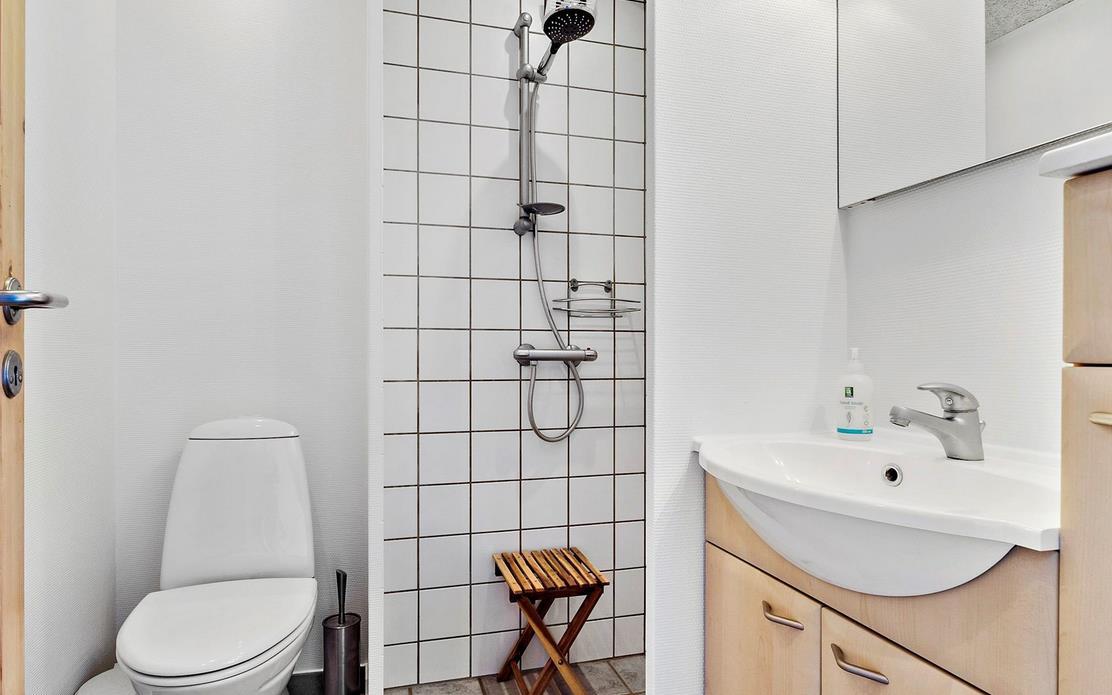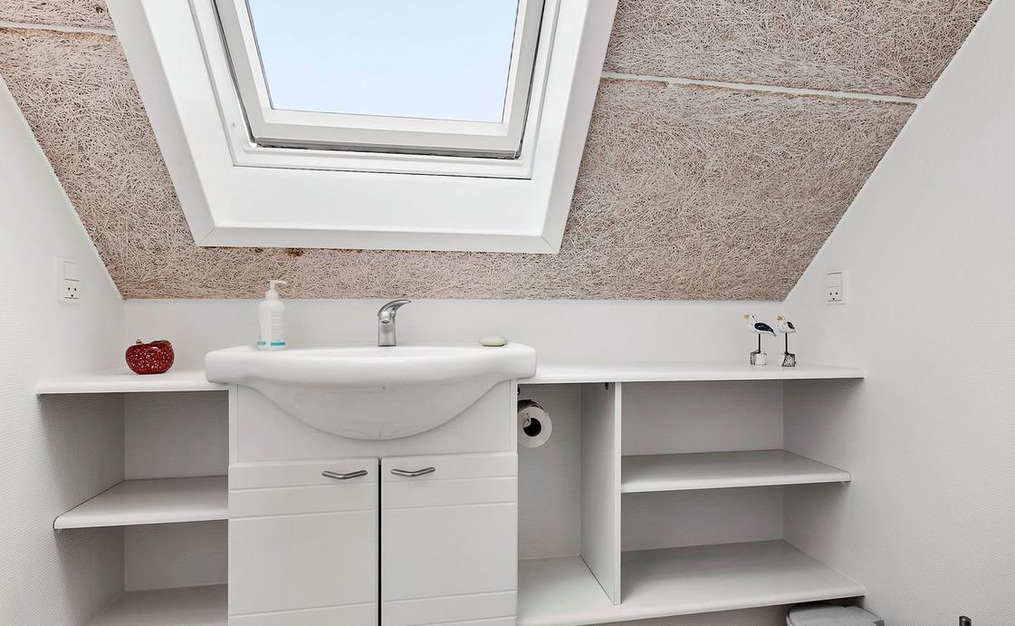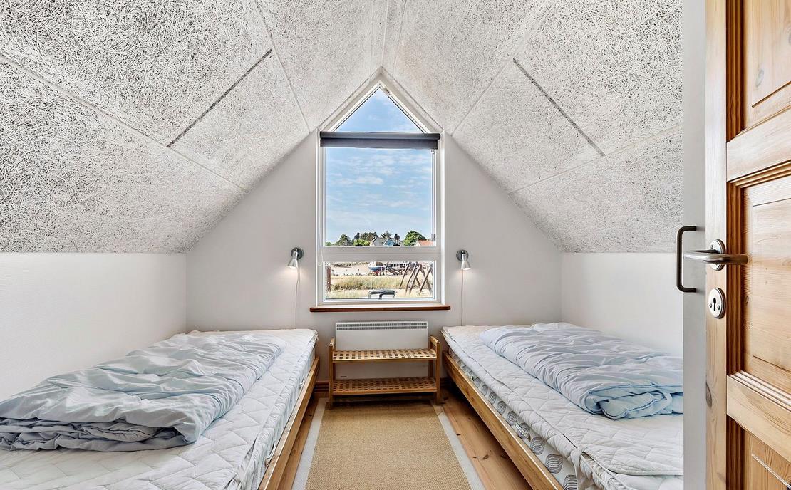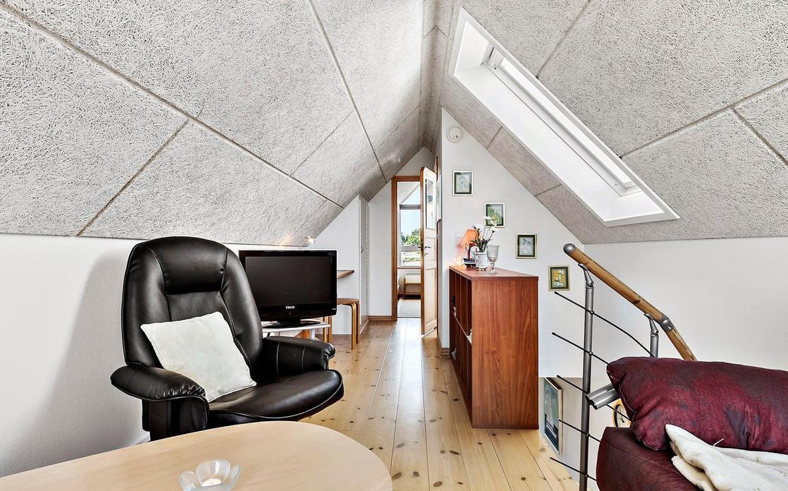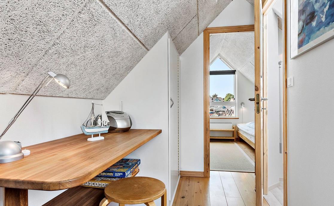 Vom Eingangsbereich kommt man in den hellen Wohnbereich mit Wohnzimmer und Küche in offener Verbindung und Ausgang auf die Terrasse mit Blick auf den Jachthafen. Der Raum ist mit einem Essplatz für vier Personen, TV mit dänischen (inkl. TV2) und deutschen Programmen und Radio ausgestattet. Die Küche ist mit Glaskeramik-Kochfeld, Mikrowelle, Kühl-/Gefrierkombination ausgestattet. Von hier aus führt eine Treppe auf den Hängeboden mit Aufenthalts-/Aussichtsraum, Schlafzimmer mit zwei Einzelbetten und Toilette. Im geräumigen Eingangsbereich befindet sich ein „verborgenes“ wandmontiertes Doppelbett, das sich einfach ausklappen lässt, so dass der Raum auch als Schlafzimmer für zwei Personen dient. Von hier aus besteht auch Zugang zum schönen gefliesten Badezimmer mit Dusche. Das gut isolierte Haus ist mit Fußbodenheizung ausgestattet und ganzjährig bewohnbar. Internetzugang.