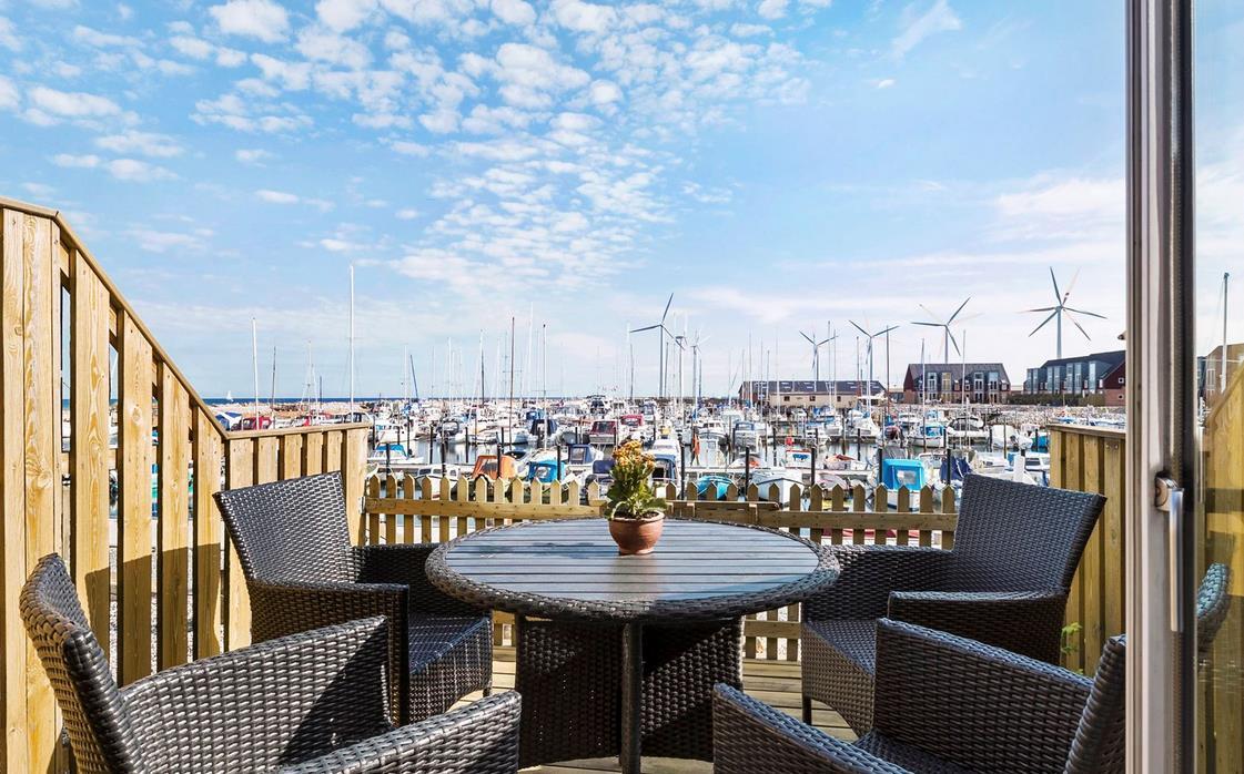 Charmantes Ferienhaus mit Panoramablick direkt am Jachthafen von Bønnerup Strand.