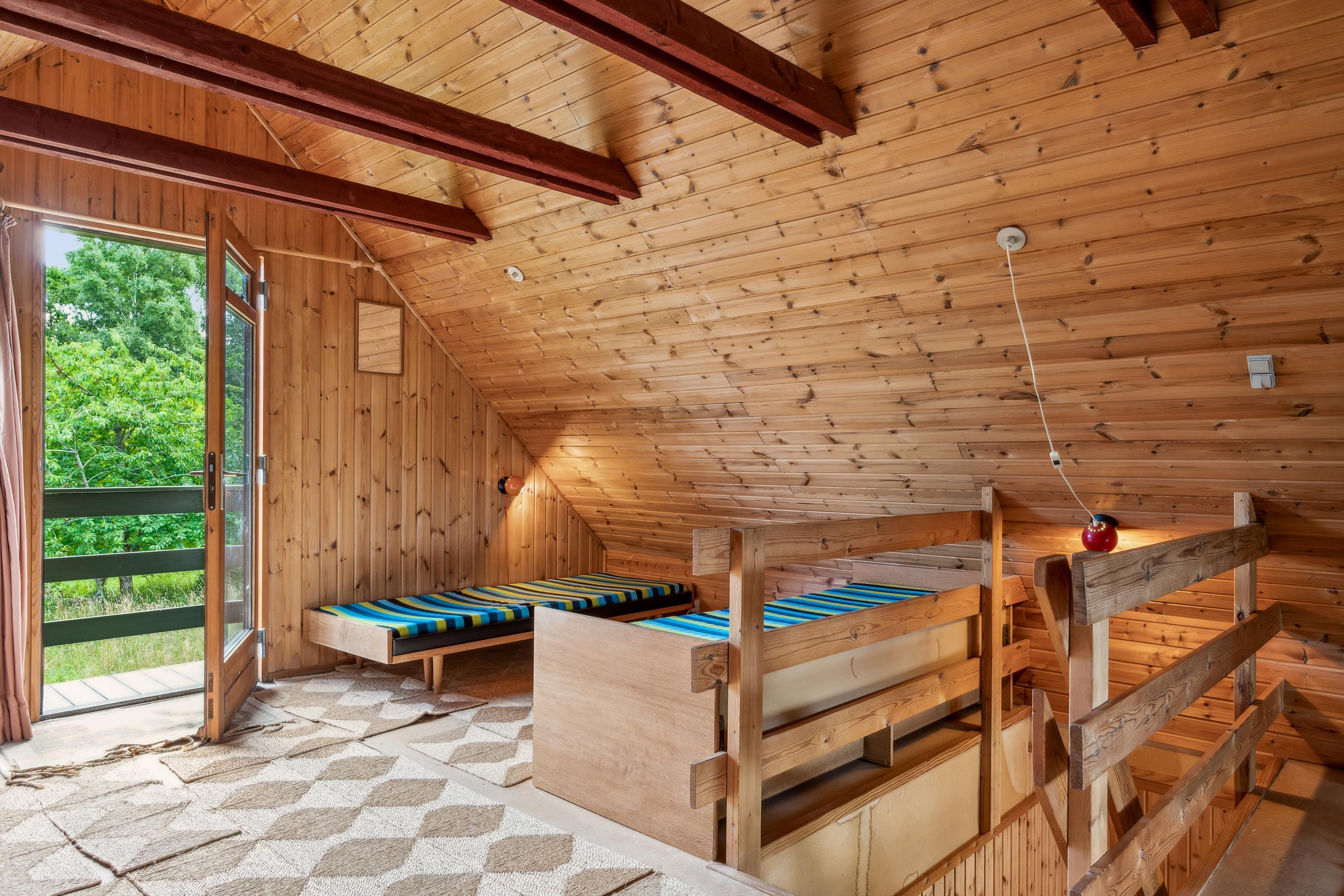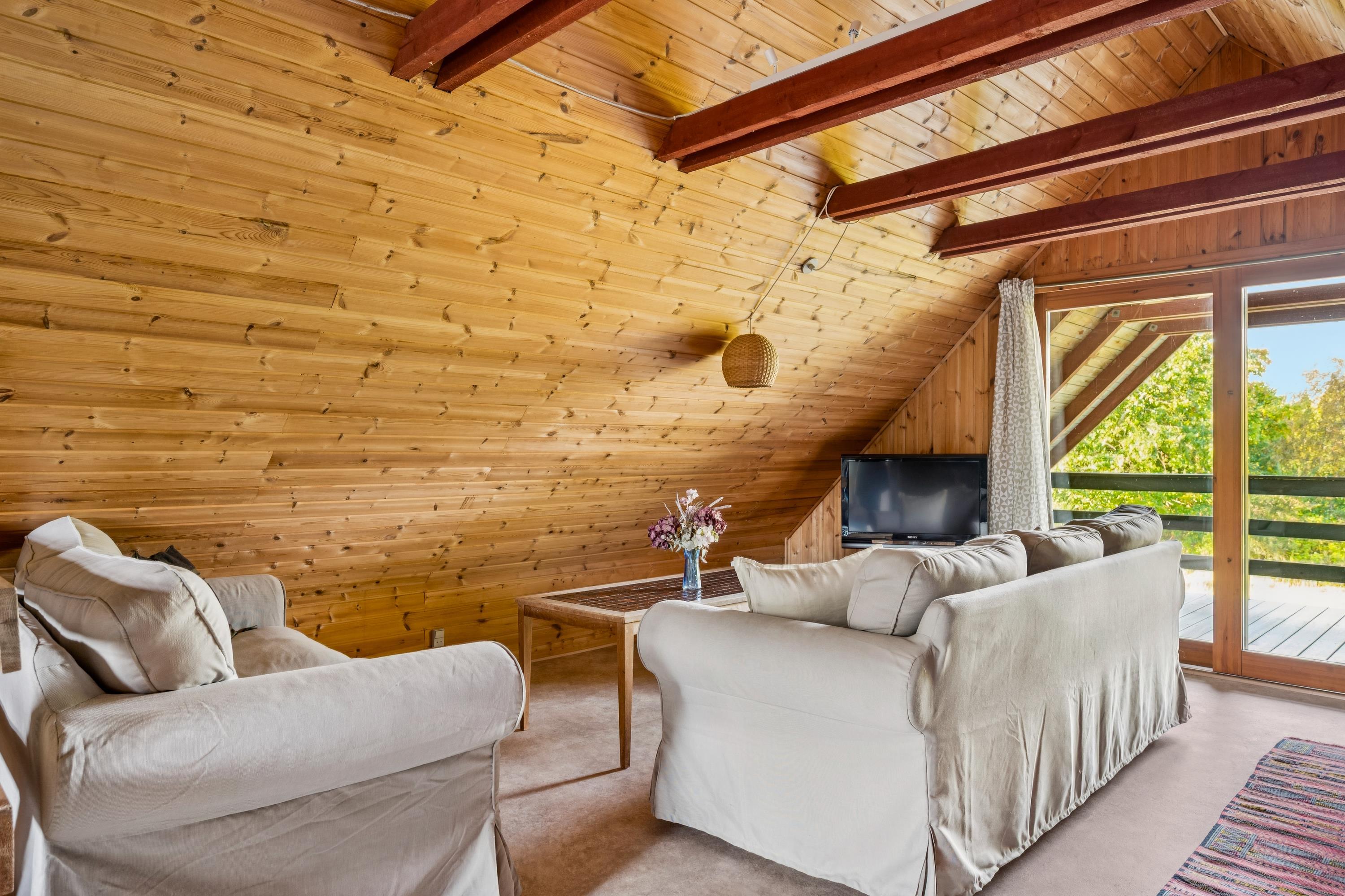 In der Nähe eines der kinderfreundlichsten Sandstrände Djurslands finden Sie dieses ältere, authentische Ferienhaus. Das Ferienhaus erstreckt sich über zwei Ebenen und verfügt in der unteren Etage über ein gemütliches Wohnzimmer mit einem guten Essbereich und einer älteren, aber funktionalen Küche. Zwei Schlafzimmer, ein Zimmer mit Doppelbett und ein Zimmer mit zwei Einzelbetten. Schönes Badezimmer mit Dusche. Vom Wohnzimmer aus gelangen Sie in die 1. Etage, wo sich ein großes Wohnzimmer und zwei Einzelbetten befinden. Das Ferienhaus liegt auf einem großen Naturgrundstück