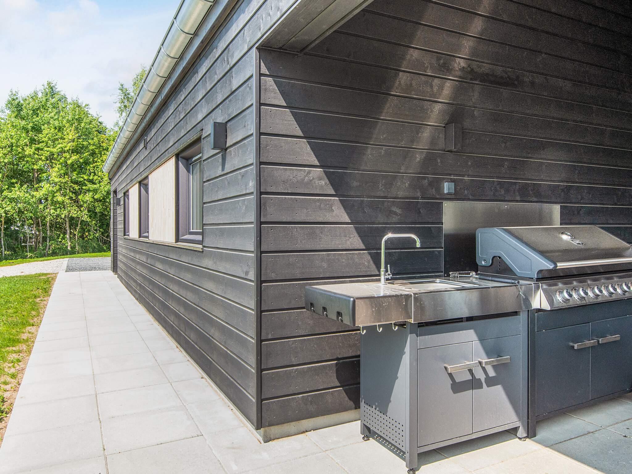 Das Ferienhaus liegt auf einem 2.023 m² großen Naturgrundstück, nur 800 Meter vom Meer und ebenso weit vom nächsten Einkaufszentrum entfernt. Im Außenbereich finden Sie eine umzäunte Terrasse mit Schaukel, Sandkasten, Trampolin, Spielturm und Rutsche. Eine Außenküche mit Gasgrill lädt zum Grillen unter freiem Himmel ein (Gas muss mitgebracht werden). Zusätzlich gibt es eine Ladestation für Elektroautos (Typ 2) mit einer Ladeleistung von 11 kW. Parkplätze befinden sich direkt neben dem Haus.