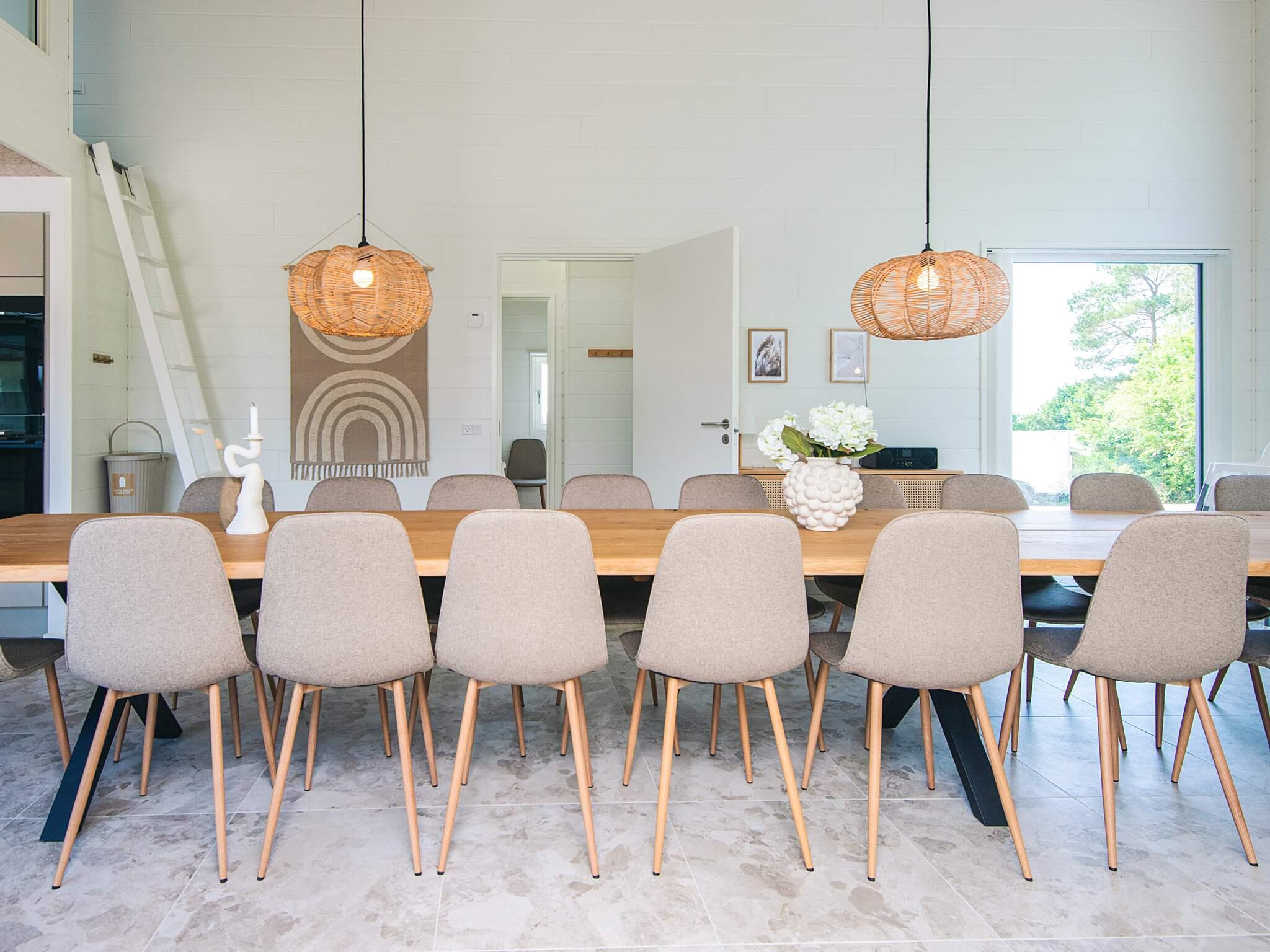 Dieses geräumige und moderne Ferienhaus bietet Platz für bis zu 22 Personen und umfasst insgesamt 268 m². Das Haus wurde 2025 erbaut und ist komfortabel, energieeffizient und mit einer guten Ausstattung für Kinder und Erwachsene eingerichtet. Beheizt wird das Haus mit einer energiesparenden Luft-Wasser-Wärmepumpe. Zusätzlich gibt es Solarheizung und Fußbodenheizung im gesamten Haus.