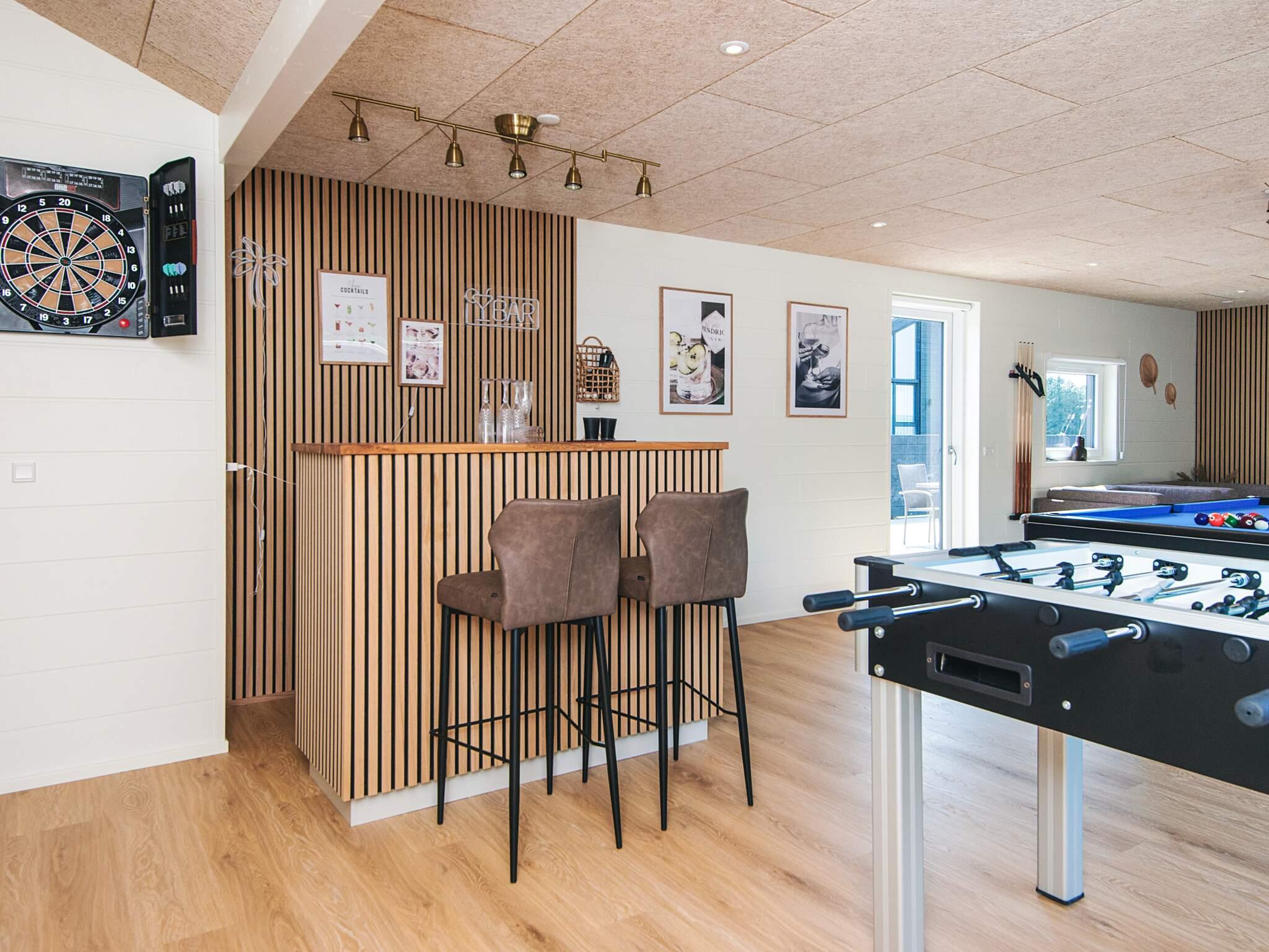 Im Ferienhaus erwartet Sie ein schöner Swimmingpool mit einer Temperatur zwischen 24 und 28 °C. Der Pool ist 6 Meter lang, 3 Meter breit und bis zu 1,4 Meter tief – ideal zum Spielen und Entspannen. Im Aktivitätsraum stehen Ihnen Billard, Tischtennis, Darts und Tischfußball zur Verfügung.