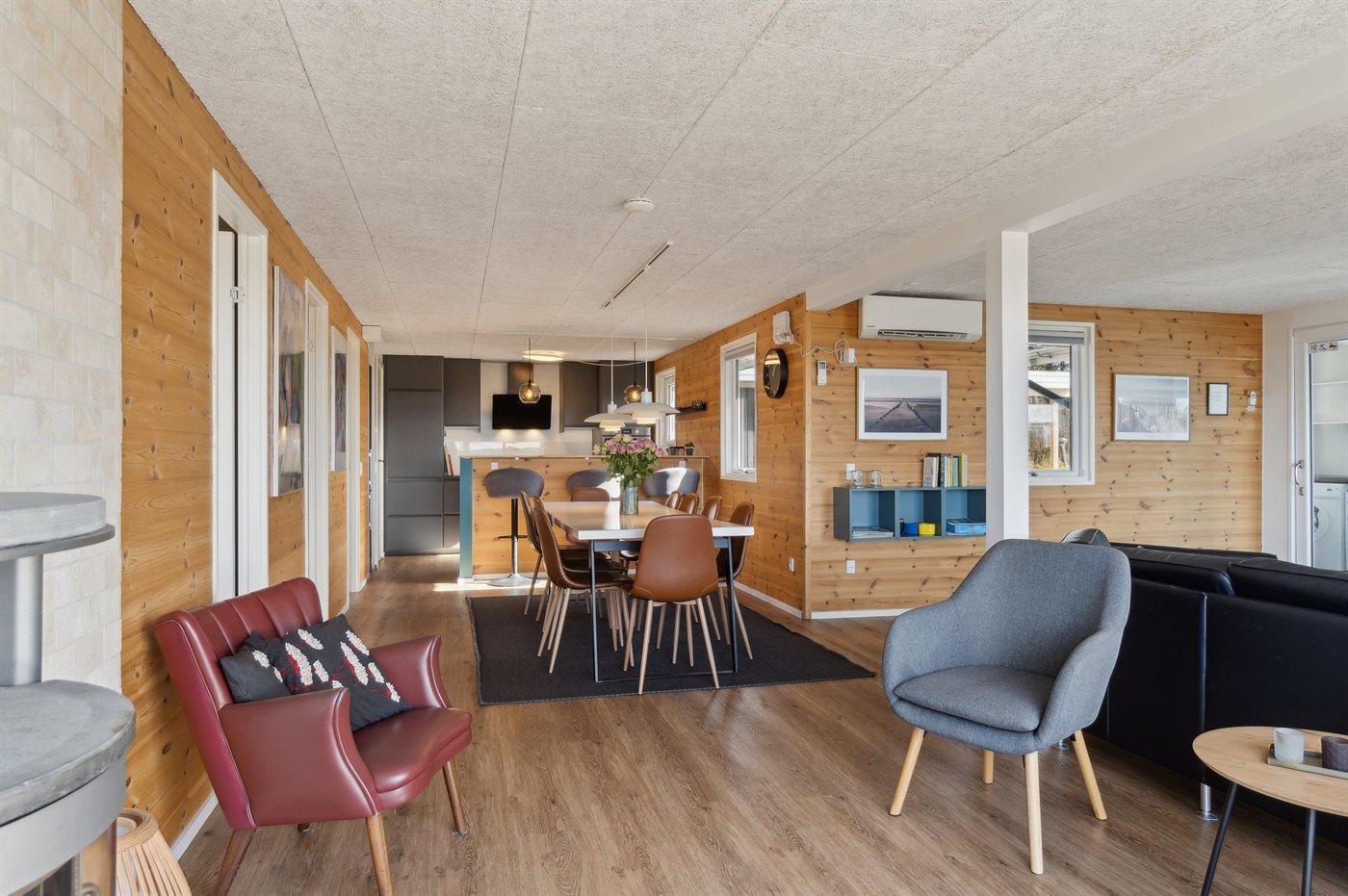 Dieses schöne und gepflegte Ferienhaus mit großem und einladendem Swimmingpool liegt in ruhiger und malerischer Umgebung am Strand von Bønnerup an der Spitze von Norddjurs und entlang der schönen Küste des Kattegats. Das Ferienhaus erscheint hell und modern und verfügt über eine gute Raumaufteilung, weshalb es sich für zum Beispiel zwei Familien oder einfach eine Familie mit Großeltern anbietet - die Möglichkeiten sind vielfältig in diesem gut gelegenen Ferienhaus. Das Ferienhaus wurde 2021 umfassend renoviert und präsentiert sich daher in sehr gutem Zustand.