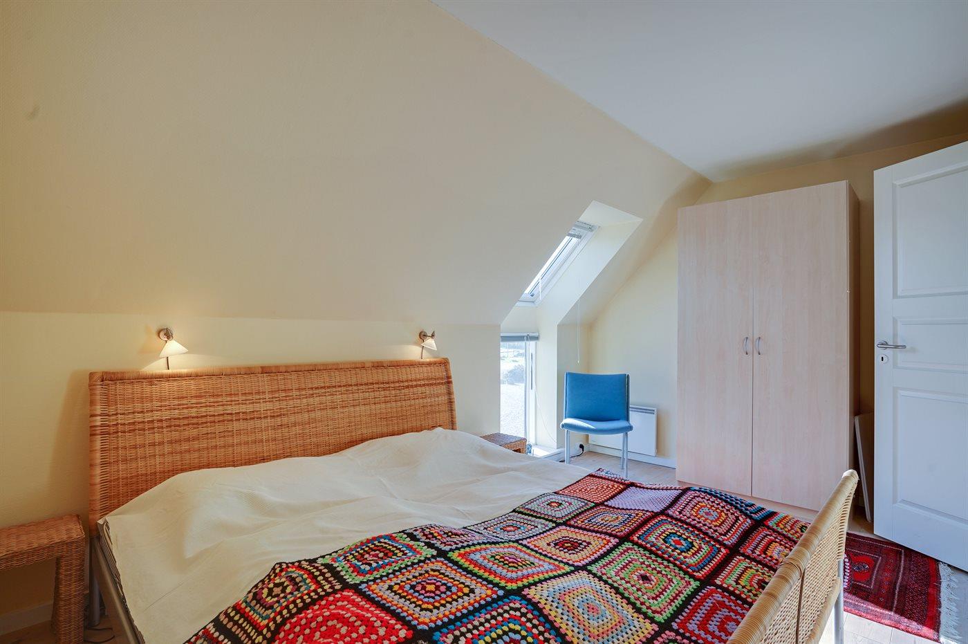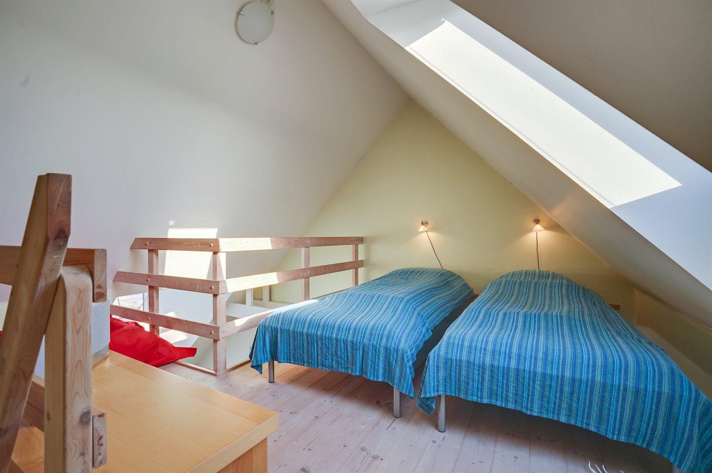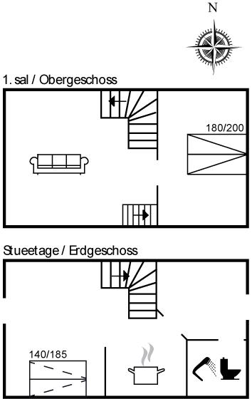 Es gibt einen Schlafraum. 2 Schlafplätze in einem Doppelbett. 2 Schlafplätze in Einzelbetten. 2 Schlafplätze auf einer Doppelschlafcouch. 2 von diesen Schlafplätzen befinden sich im Wohnzimmer und 2 befinden sich im offenen Obergeschoss. Ferner steht ein Kinderbett zur Verfügung.
