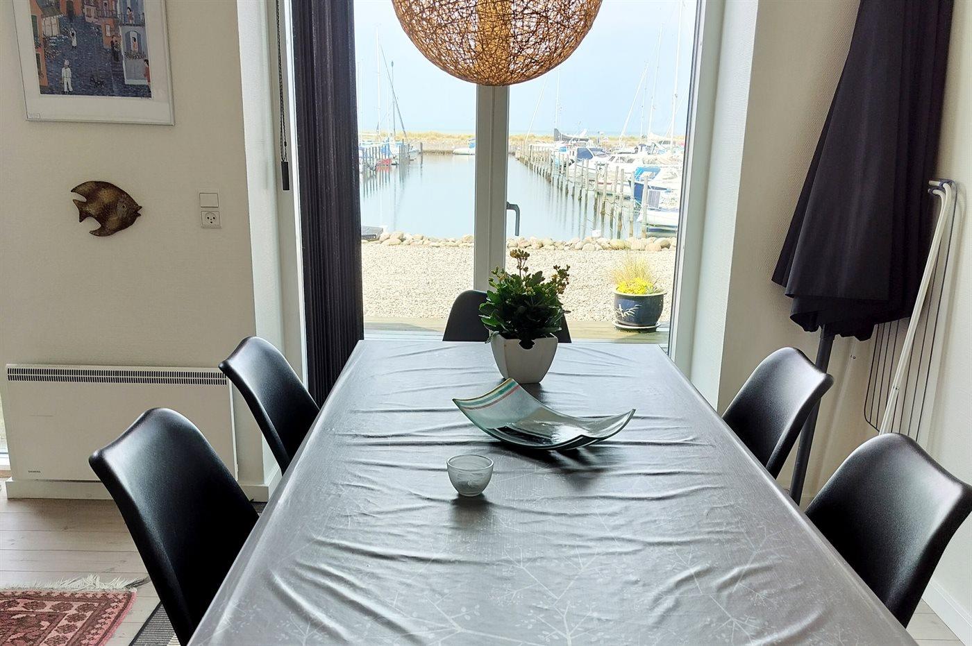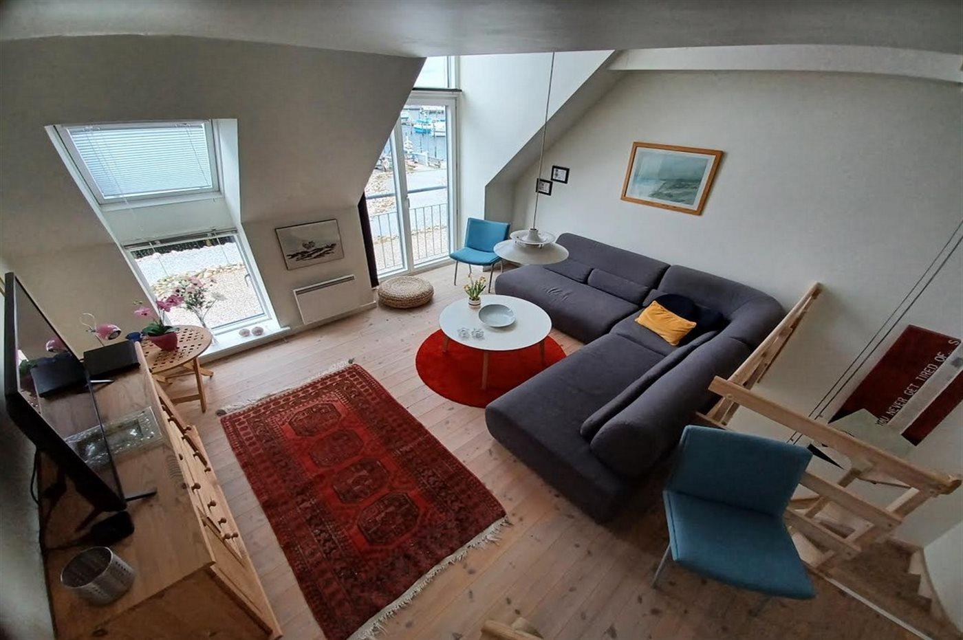 Direkt an Kattegat, an einem idyllischen Fischerei- und Segelboothafen und 100 m vom Sandbadestrand mit "Blauer Flagge", liegt diese sehr hübsche 3-stöckige Wohnung. Panoramablick auf Kattegat und Bootshafen von der Wohnung.