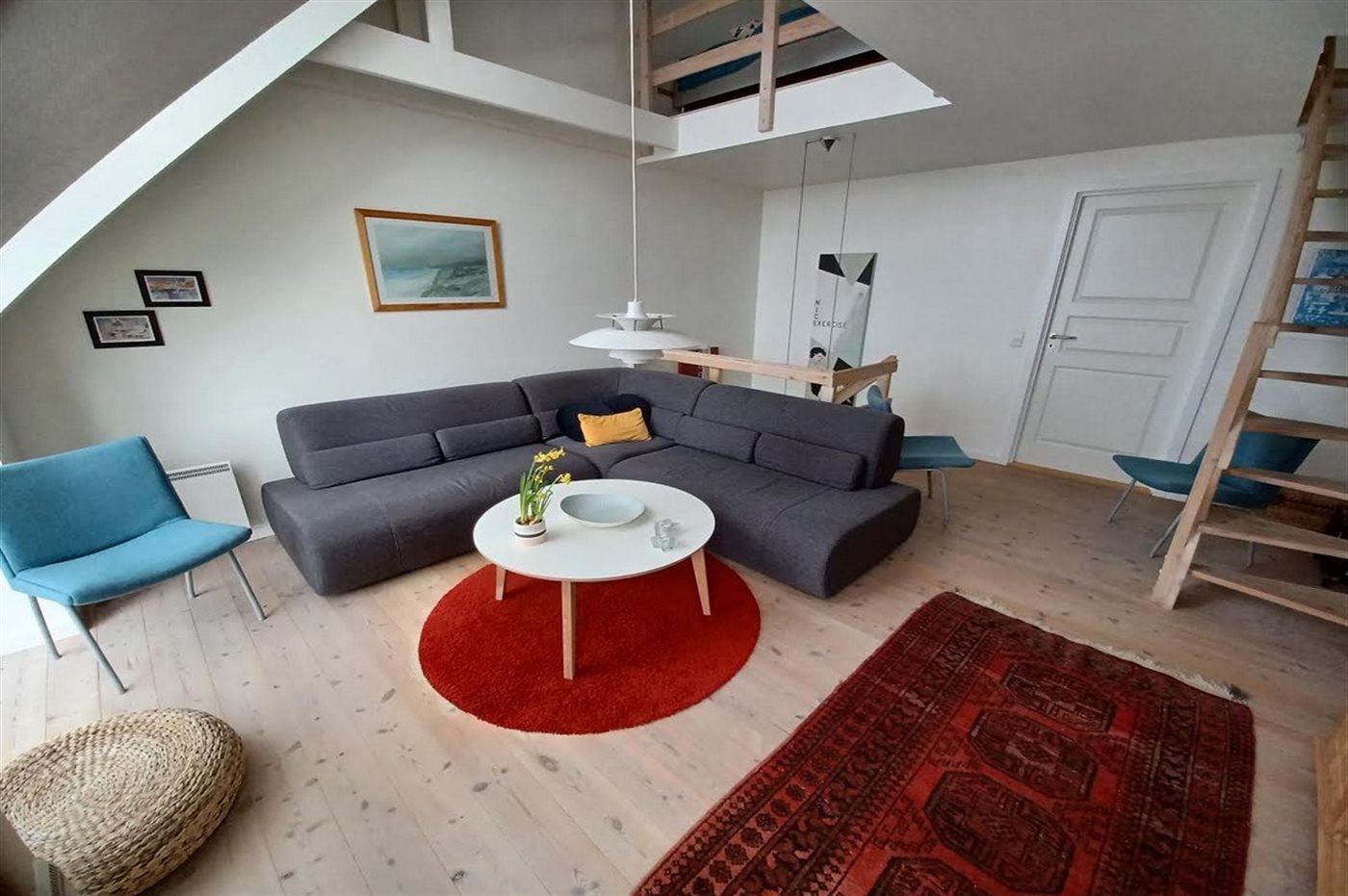 Charmante 3-stöckige Ferienwohnung mit Meerblick und direktem Zugang zum Sandstrand in Bønnerup Strand.