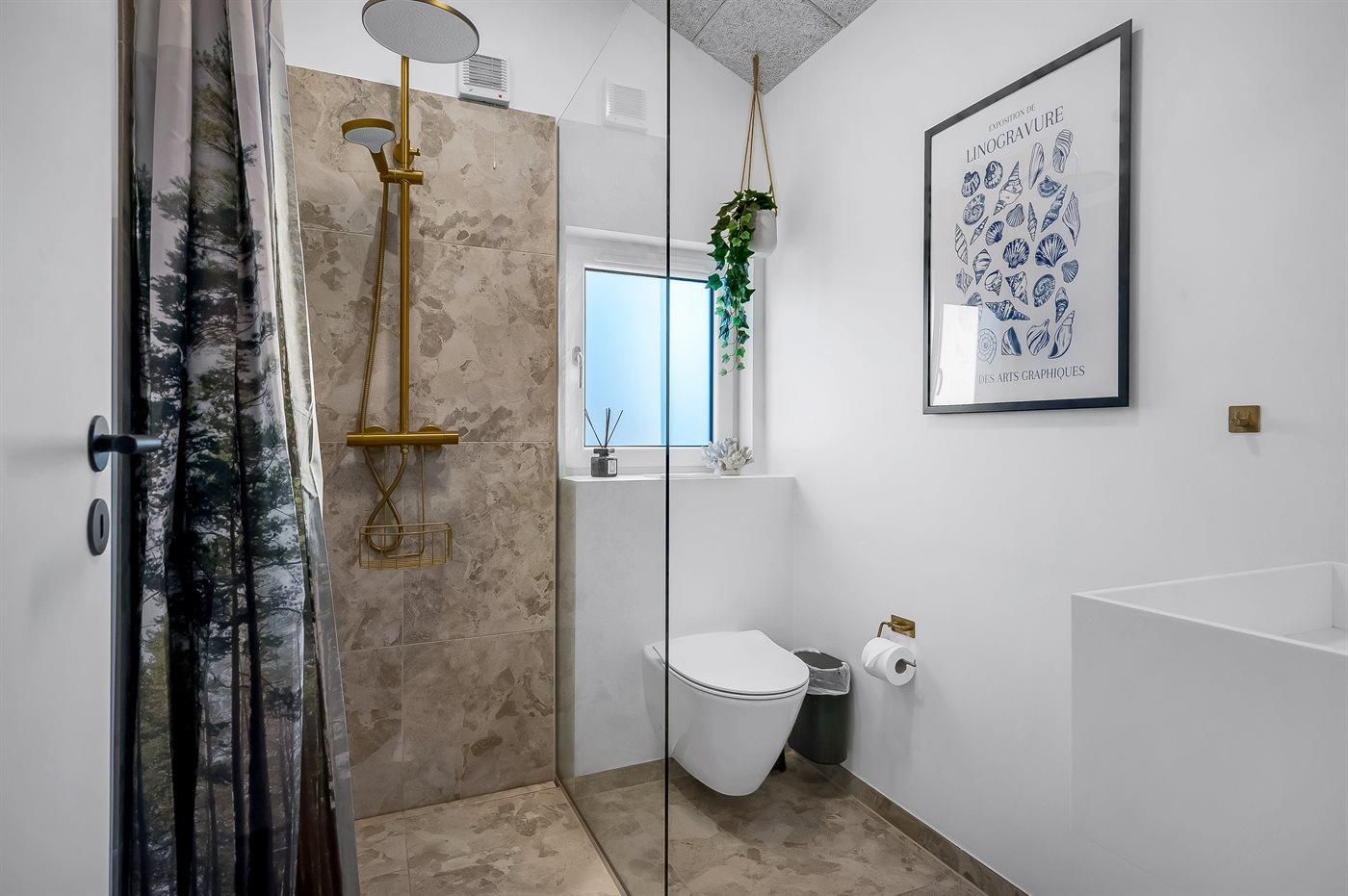 Es gibt 4 Badezimmer mit Duschnische und 3 Toiletten. Fußbodenheizung in 4 Badezimmern. Es steht eine Sauna zur Verfügung in der Sie sich so richtig entspannen können.