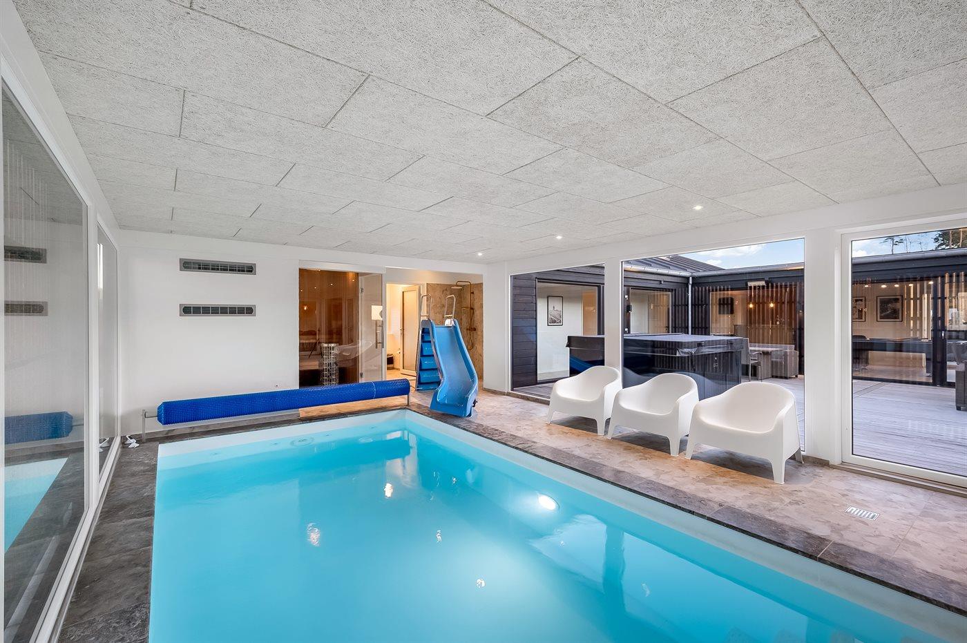 Modernes Ferienhaus in Bønnerup Strand mit Pool, Sauna, Whirlpool und umfangreicher Ausstattung für erholsame Tage.