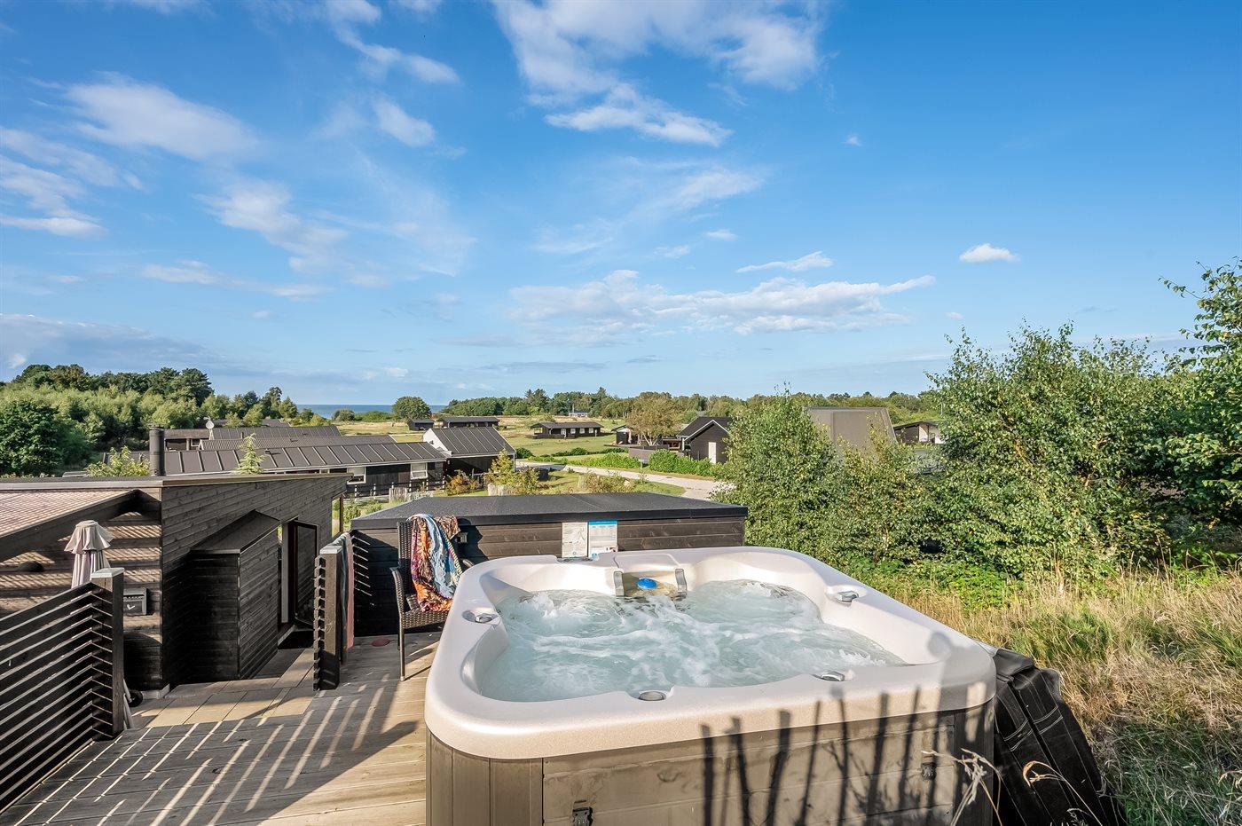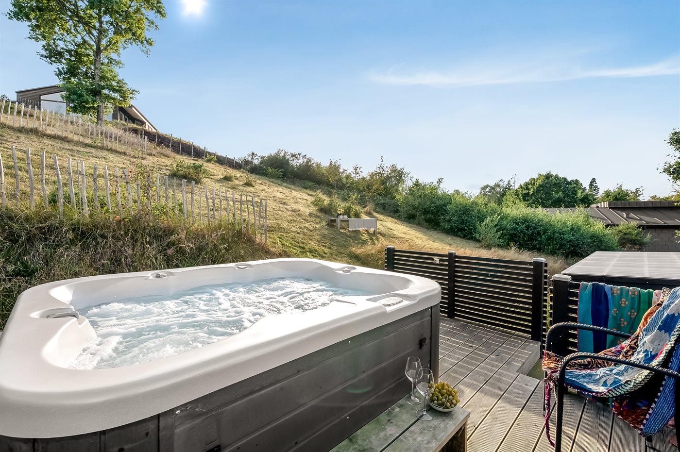 Modernes Ferienhaus bei Bønnerup Strand mit Whirlpool und Meerblick, ideal für entspannte Urlaubstage.