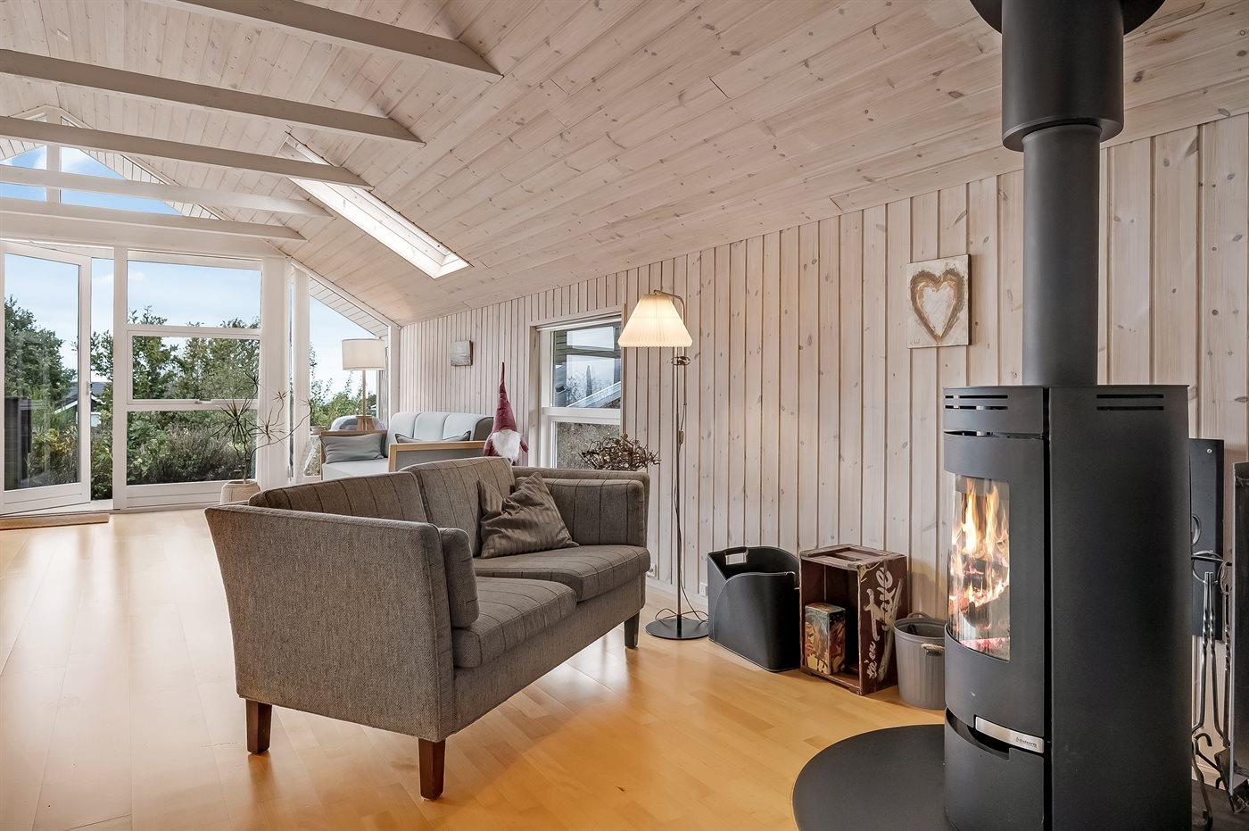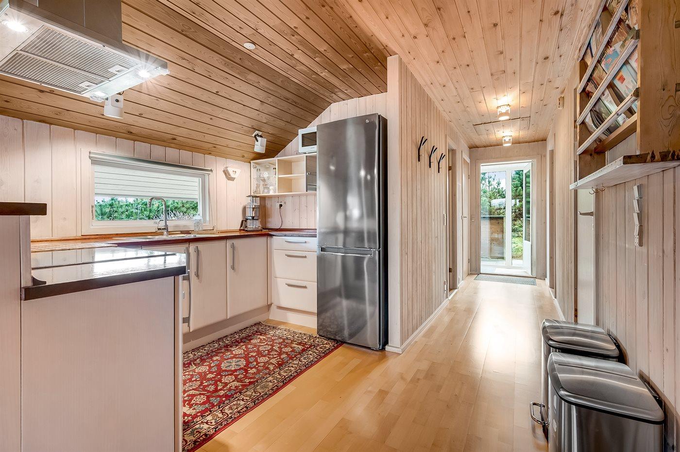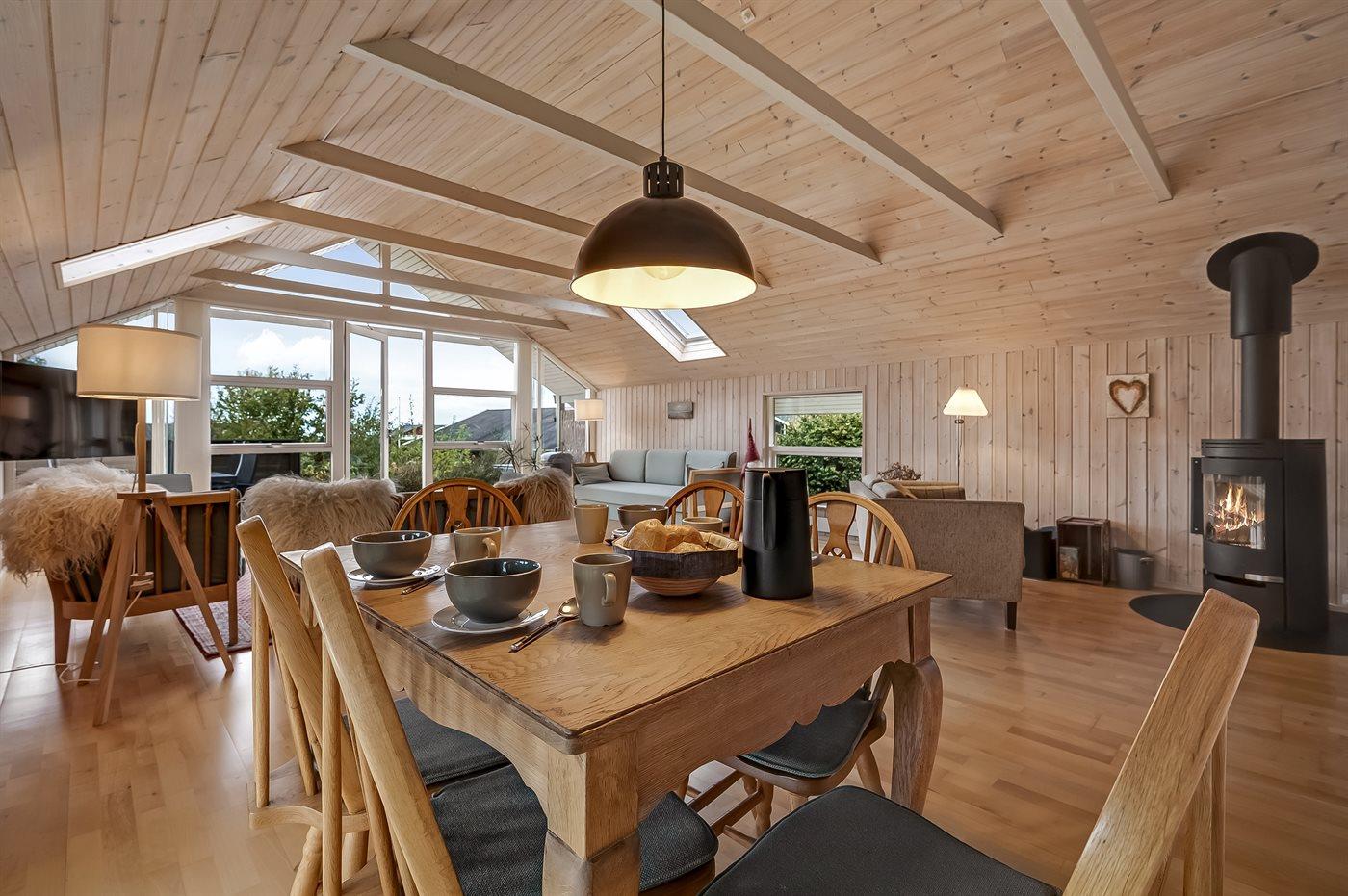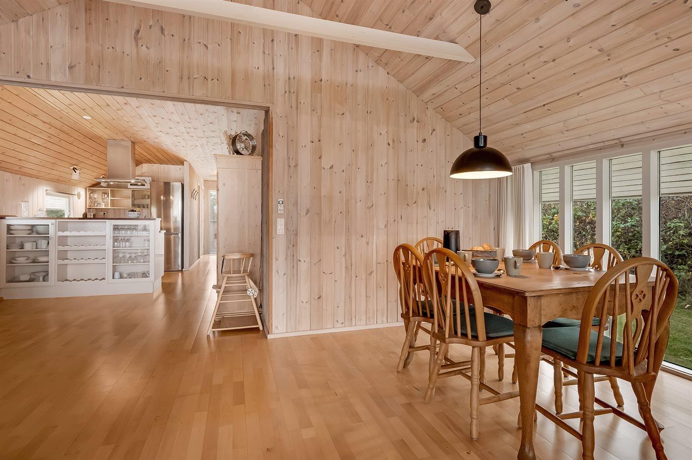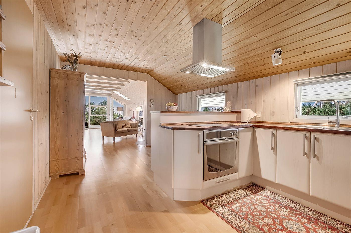 Im Inneren präsentiert sich das Ferienhaus hell und einladend mit einer funktionalen Einrichtung, die sich perfekt für eine Familie mit Kindern eignet, und es besteht auch die Möglichkeit, zum Beispiel die Großeltern mit in den Urlaub zu nehmen. Das Herzstück des Hauses ist der schöne Küchen-Essbereich, der mit dem Wohnbereich kombiniert ist. Die großen Fenster und Dachfenster sorgen für einen fantastischen Lichteinfall, und vom Wohnzimmer aus gelangt man direkt auf die Terrasse.